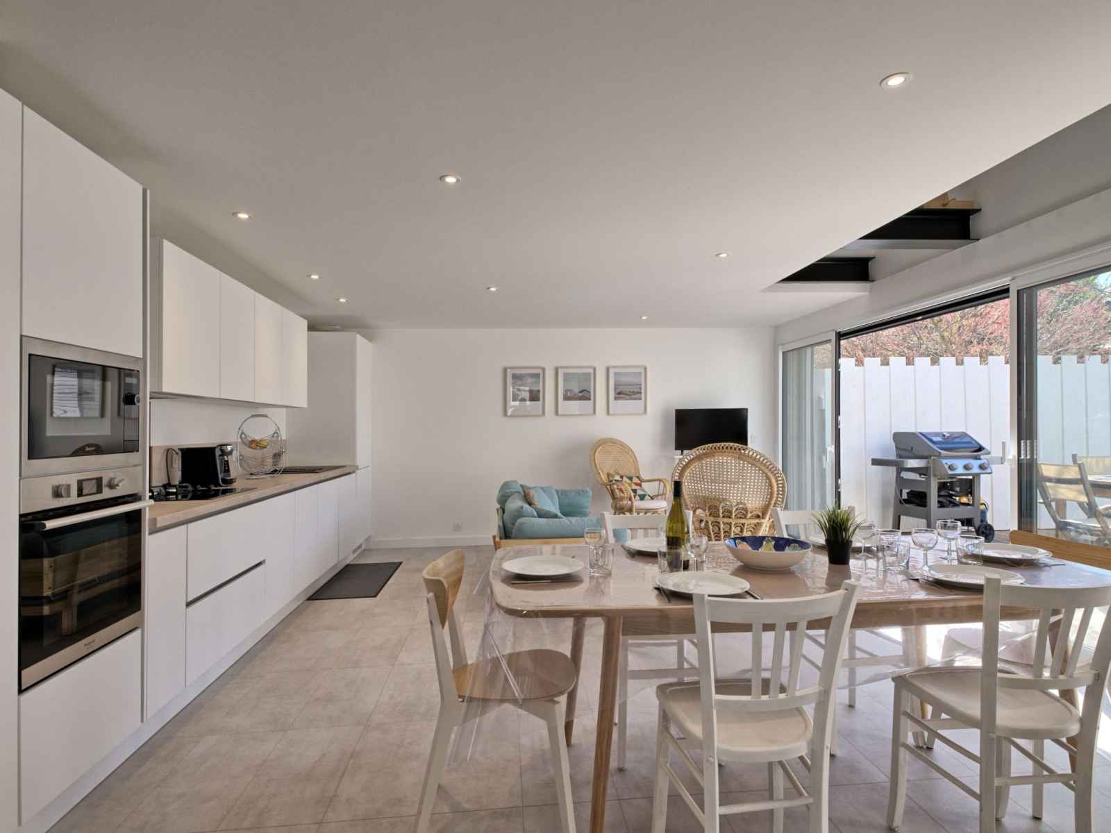 "ker bernic", maison 4 pièces 85 m2 sur 2 niveaux, situation sud. aménagement confortable et agréable: séjour avec poêle suédois et tv. sortie sur la terrasse. 1 chambre avec 1 grand-lit (160 cm, longueur 200 cm). sortie sur le jardin. cuisine ouverte (four, lave-vaisselle, 2 plaques à induction, 2 feux, grille-pain, bouilloire électrique,