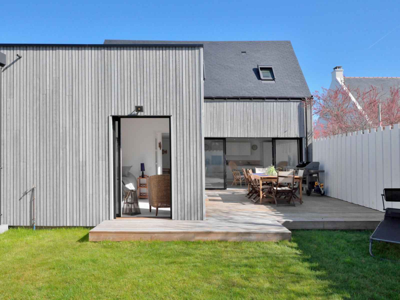Belle maison individuelle "ker bernic", année de construction 2022. À 900 m du centre de piriac-sur-mer, dans un quartier résidentiel, à 200 m de la mer. a usage privé: terrain 315 m2, jardin 240 m2 (clôturé) avec pelouse et plantes. infrastructures de la maison: réduit pour bicyclettes. place de parking (pour 2 voitures) sur le terrain.