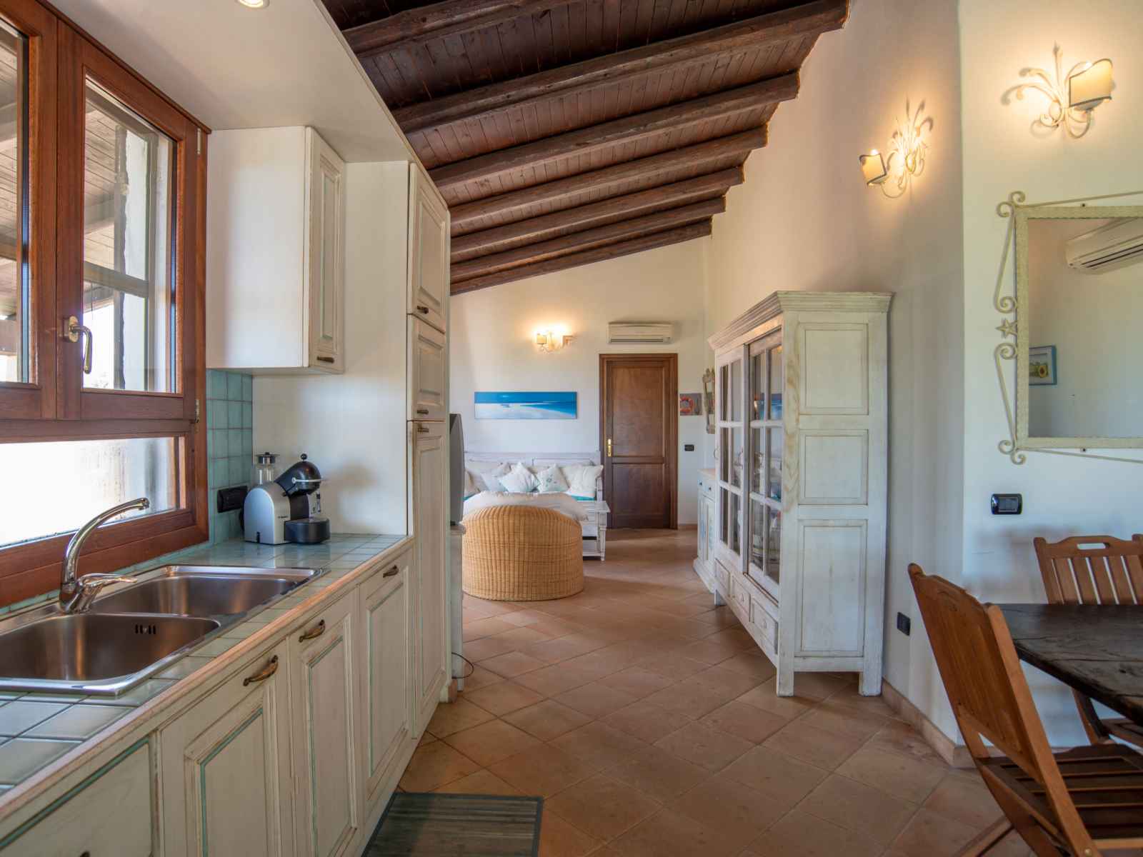 "gardenia", maison 4 pièces 120 m2, au rez-de-chaussée. aménagement confortable et plaisant: séjour/salle à manger avec tv. sortie sur la terrasse. 3 chambres doubles. coin cuisine (4 plaques de cuisson, four, lave-vaisselle, congélateur). sortie sur la terrasse. 2 douches/bidet/wc. air-conditionné, chauffage à air chaud (en sus). grande