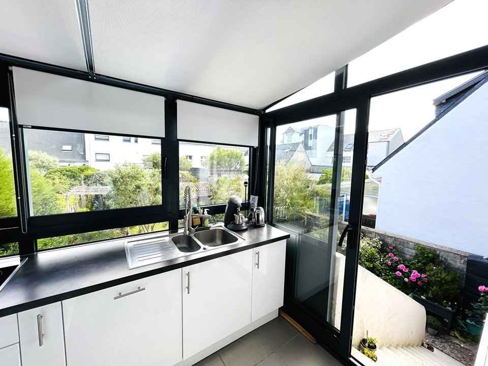 Toutes activités nautiques et de loisirs à proximité, piste cyclable le long de la mer. Grande plage de sable fin reliant Fort-Bloqué à Guidel-Plages. Boulangerie, bars et restaurants sur place au Fort-Bloqué. Supérette à Guidel-Plages à 5 km. Tous commerces et grandes surfaces au centre de Ploemeur à 6 km.