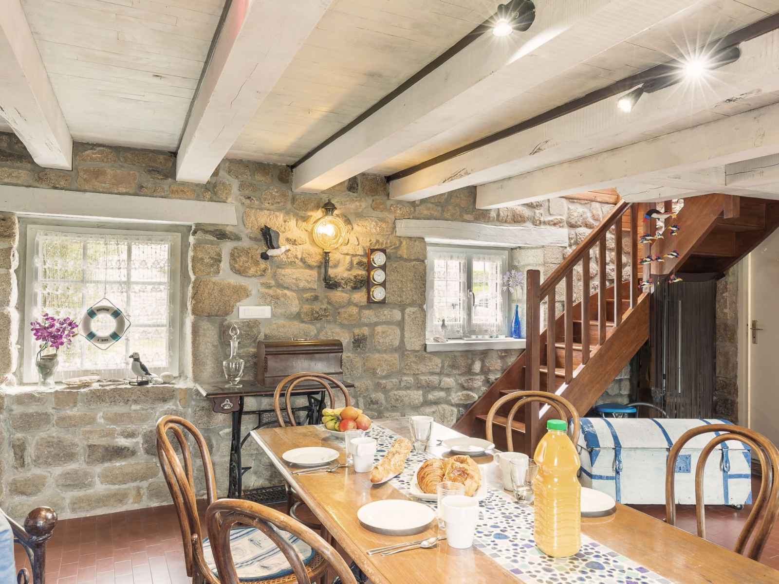 "kermalo", maison 4 pièces 80 m2 sur 2 niveaux. aménagement fonctionnel et plaisant: séjour/salle à manger avec cheminée (uniquement à titre de décoration), table pour les repas, tv et radio. sortie sur le jardin. petite cuisine ouverte (four, lave-vaisselle, 4 plaques à induction, grille-pain, bouilloire électrique, micro-ondes,