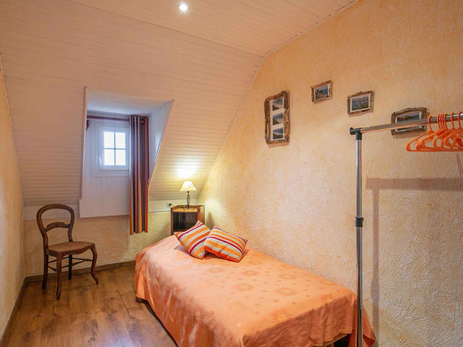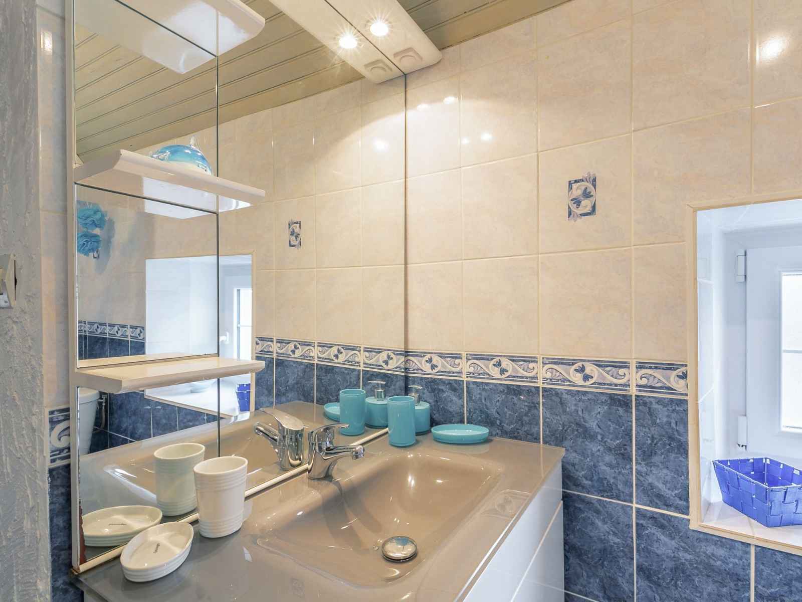 cafetière électrique). Douche/WC. Chauffage électrique. À l'étage supérieur: 2 chambres, mansardées, chaque chambre avec: 1 grand-lit (140 cm, longueur 190 cm). 1 chambre, mansardée avec 1 lit (90 cm, longueur 190 cm). Sol en bois. Jardinet. Barbecue, chaises longues (2). A disposition: lave-linge. Veuillez noter: maison non-fumeur. Détecteur de fumée.