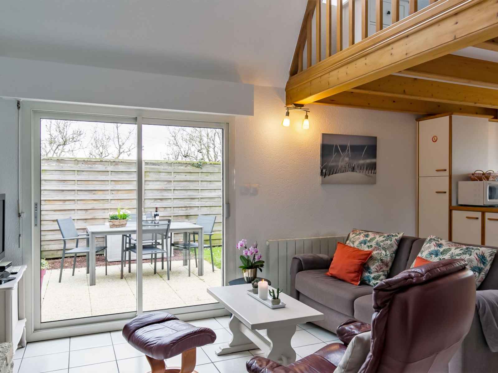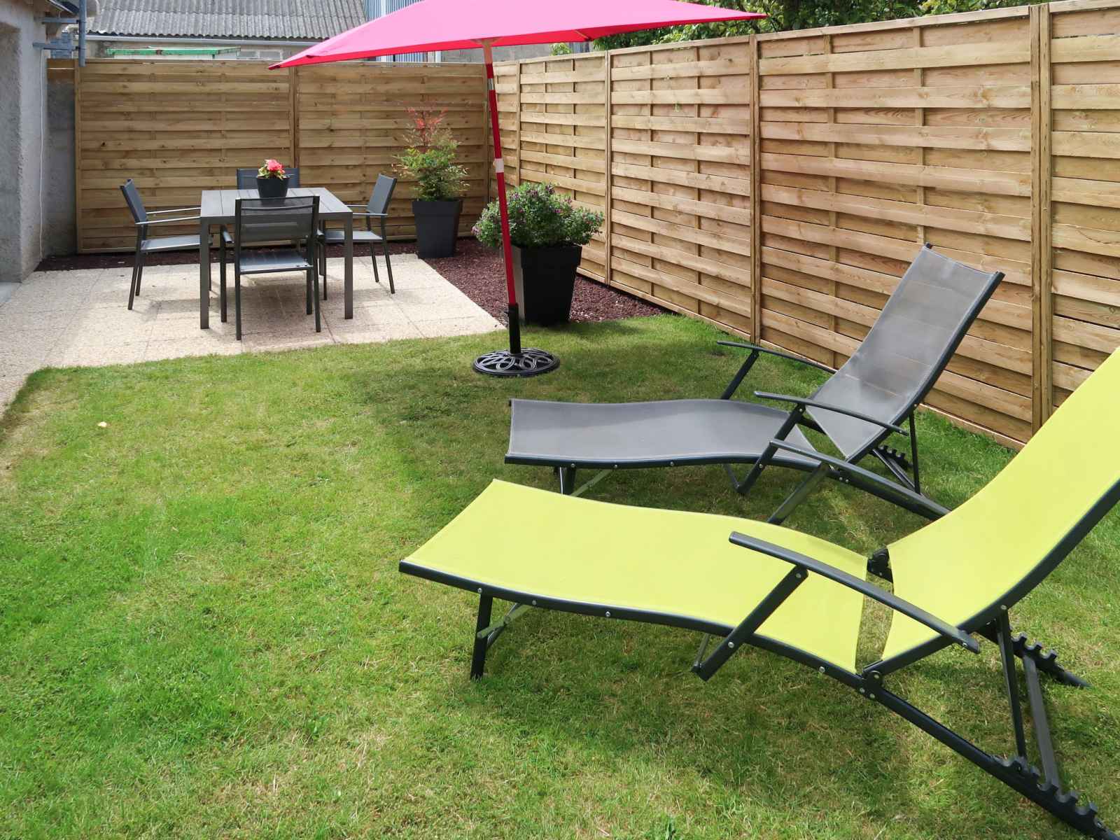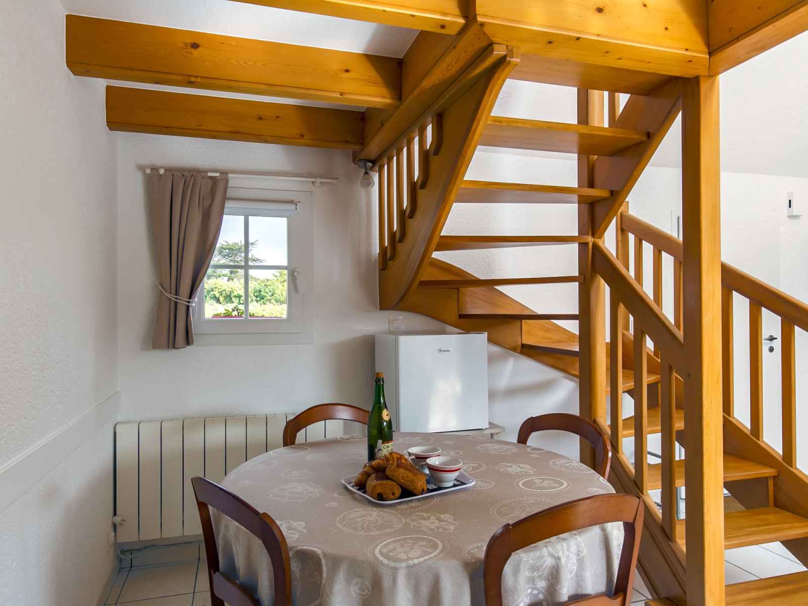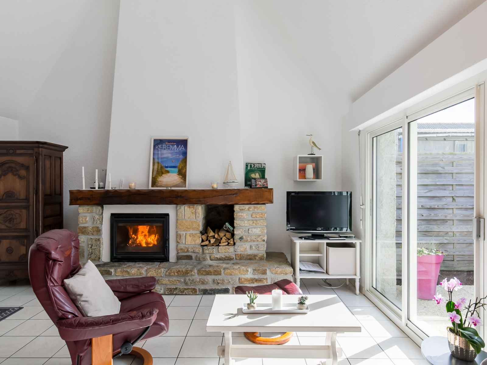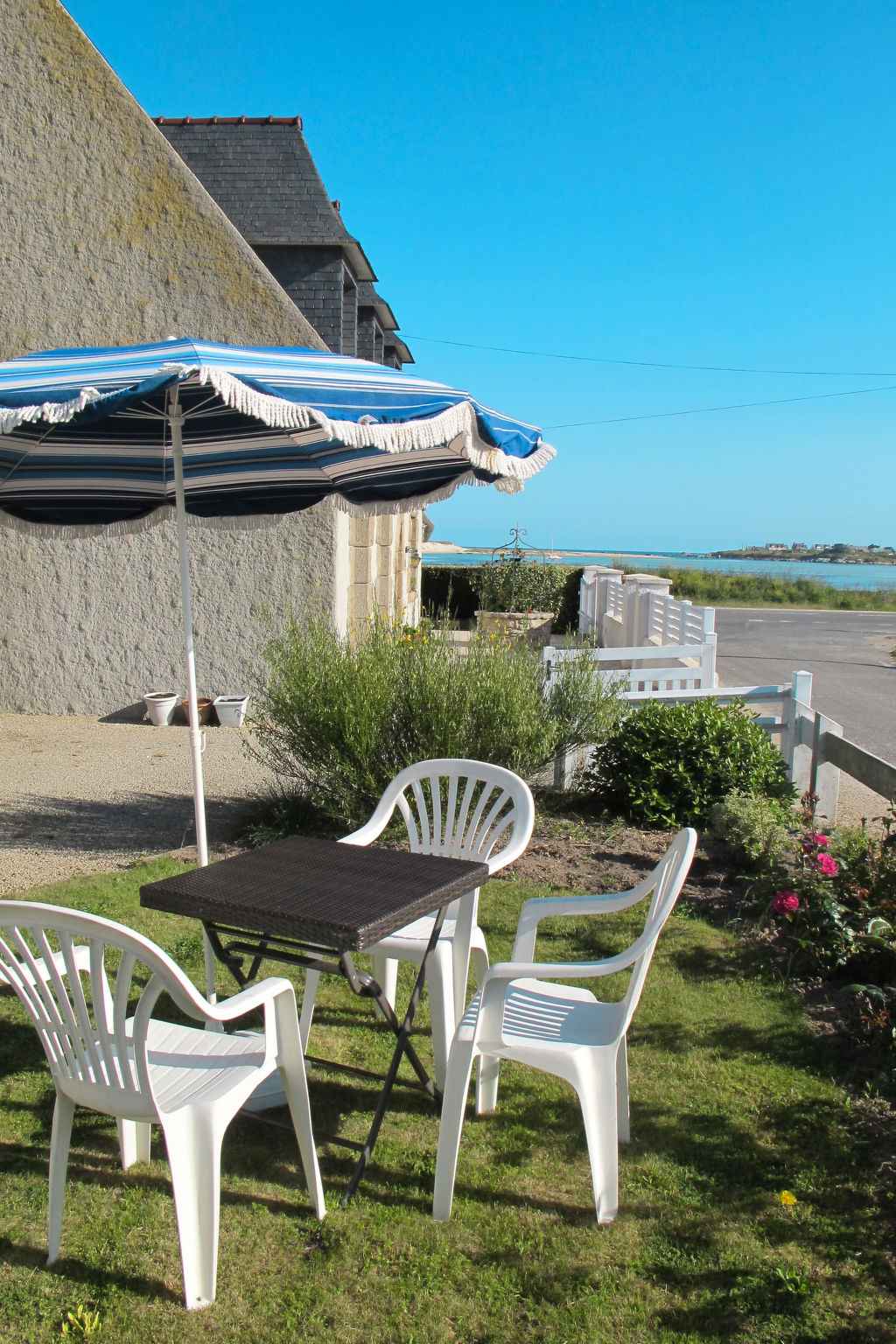 "tal ar mor", maison studio 55 m2 sur 2 niveaux. clair, aménagement plaisant: séjour/salle à manger avec poêle suédois, table pour les repas et tv (satellite). sortie sur le jardin. cuisine ouverte (four, 3 plaques à induction, grille-pain, bouilloire électrique, micro-ondes, congélateur, cafetière électrique). douche/wc. À l'étage