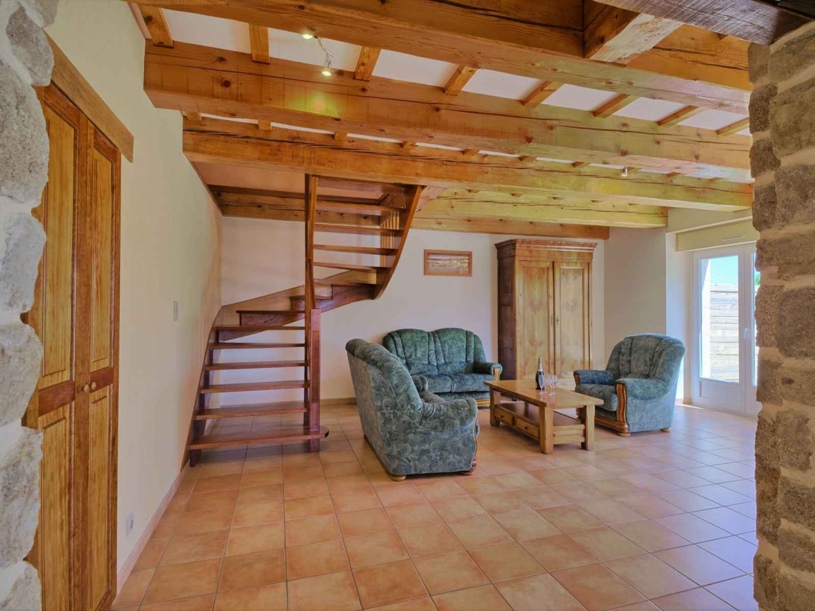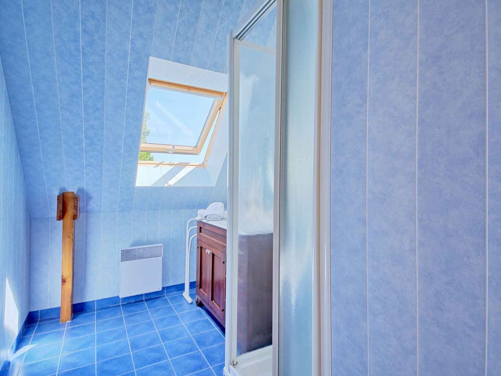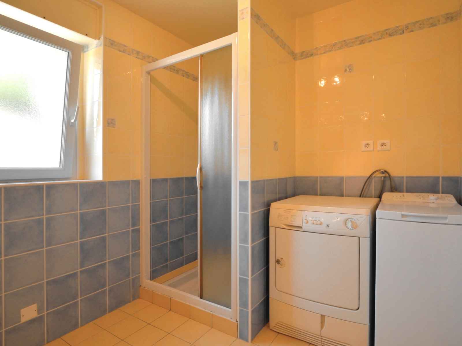 congélateur, cafetière électrique). Douche, WC séparé, double vasque. À l'étage supérieur: 1 chambre, mansardée avec 1 grand-lit (140 cm, longueur 190 cm). 1 chambre, mansardée avec 2 lits (90 cm, longueur 190 cm). Douche, WC séparé. Chauffage électrique. Terrasse 25 m2. Meubles de terrasse, barbecue. A disposition: lave-linge, sèche-linge, lit bébé. Internet (Connexion WIFI, gratuit). Veuillez noter: logement non-fumeur. Maximum 1 animal/ chien autorisé. Détecteur de fumée.
