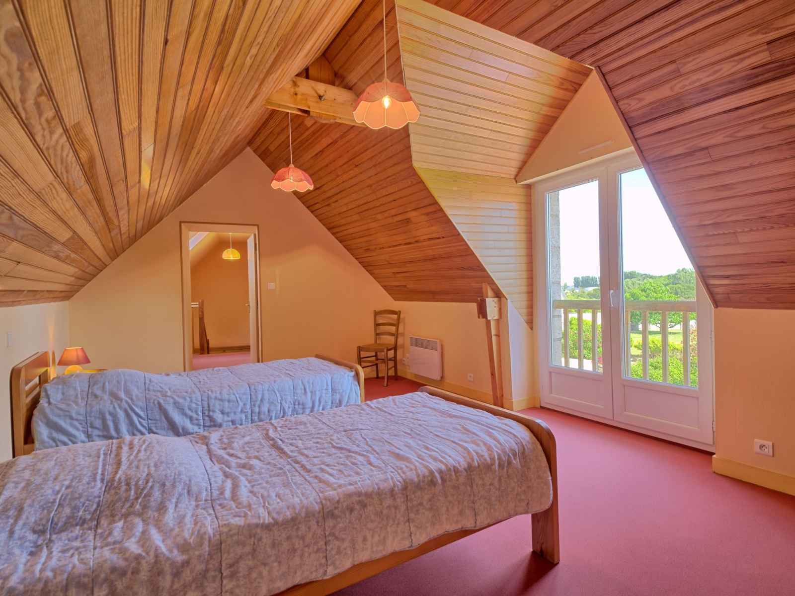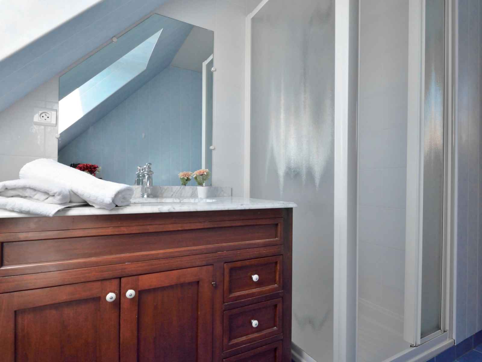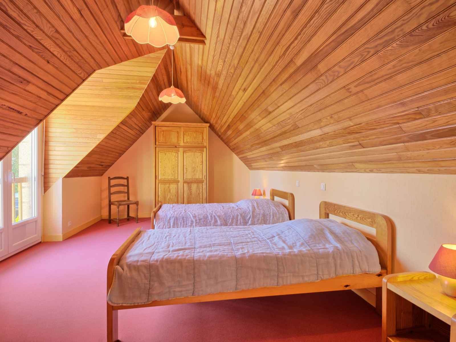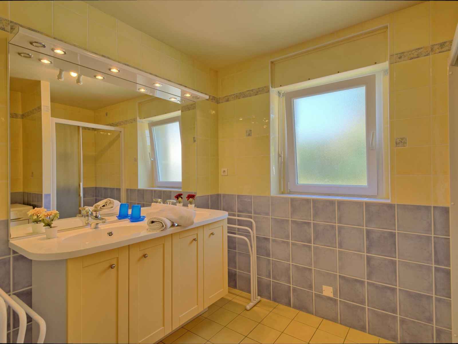 congélateur, cafetière électrique). Douche, WC séparé, double vasque. À l'étage supérieur: 1 chambre, mansardée avec 1 grand-lit (140 cm, longueur 190 cm). 1 chambre, mansardée avec 2 lits (90 cm, longueur 190 cm). Douche, WC séparé. Chauffage électrique. Terrasse 25 m2. Meubles de terrasse, barbecue. A disposition: lave-linge, sèche-linge, lit bébé. Internet (Connexion WIFI, gratuit). Veuillez noter: logement non-fumeur. Maximum 1 animal/ chien autorisé. Détecteur de fumée.