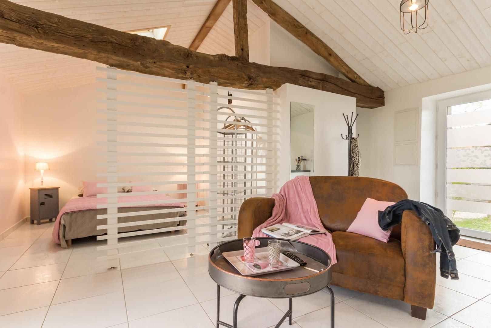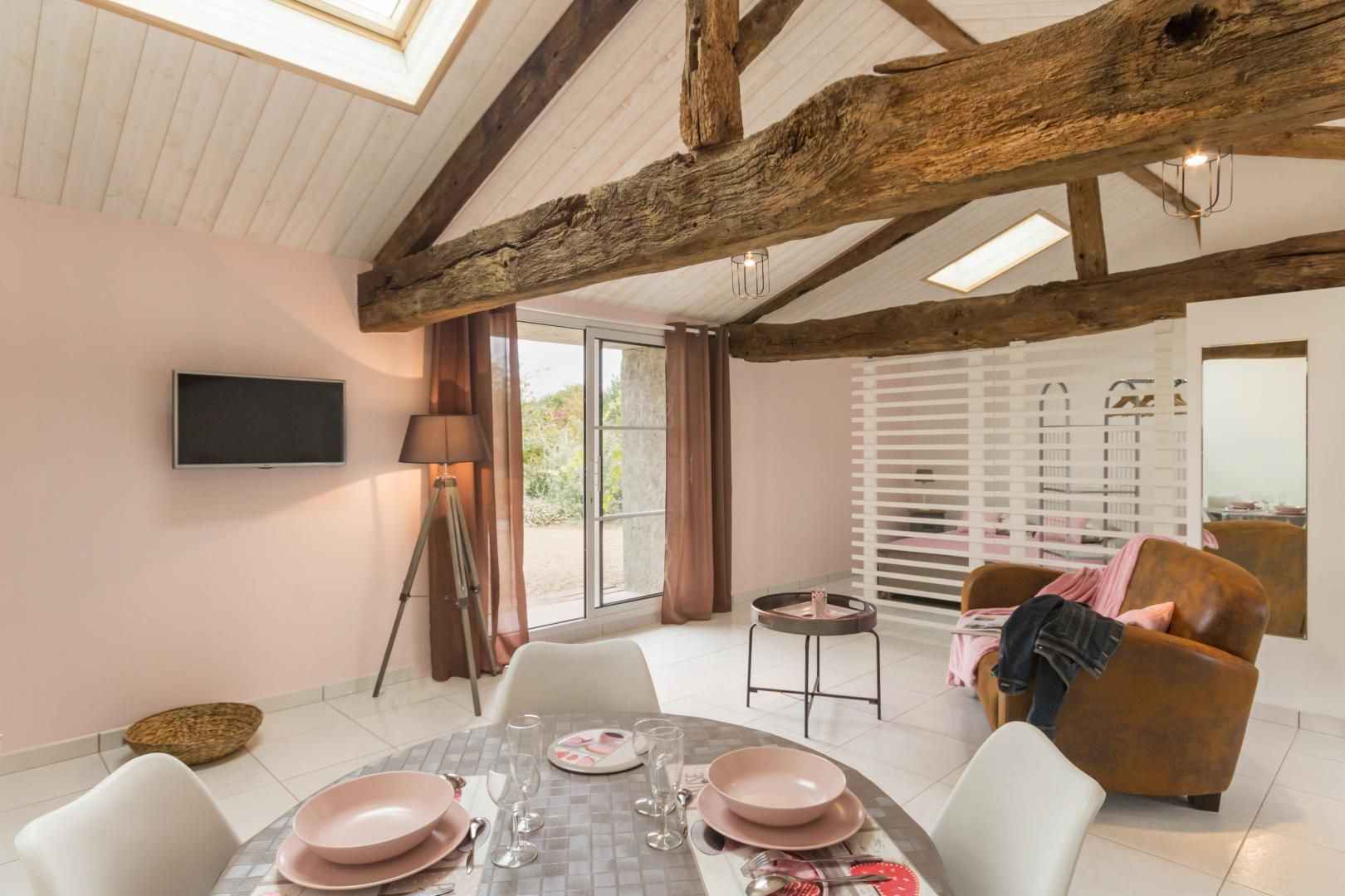 A 5 km de la mer et de pornic, au cœur d'un petit village tranquille dans un environnement de campagne, ce gîte est situé dans une longère, mitoyen à 2 autres gîtes (2 et 3 pers.). espace privatif donnant sur la campagne et accès au jardin commun semi-clos de 700 m² autour du gîte. garage commun pour vélos/motos.