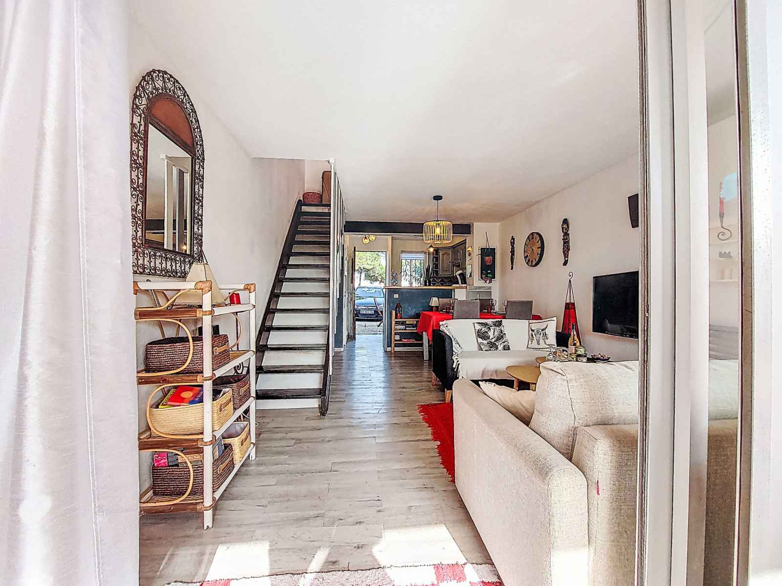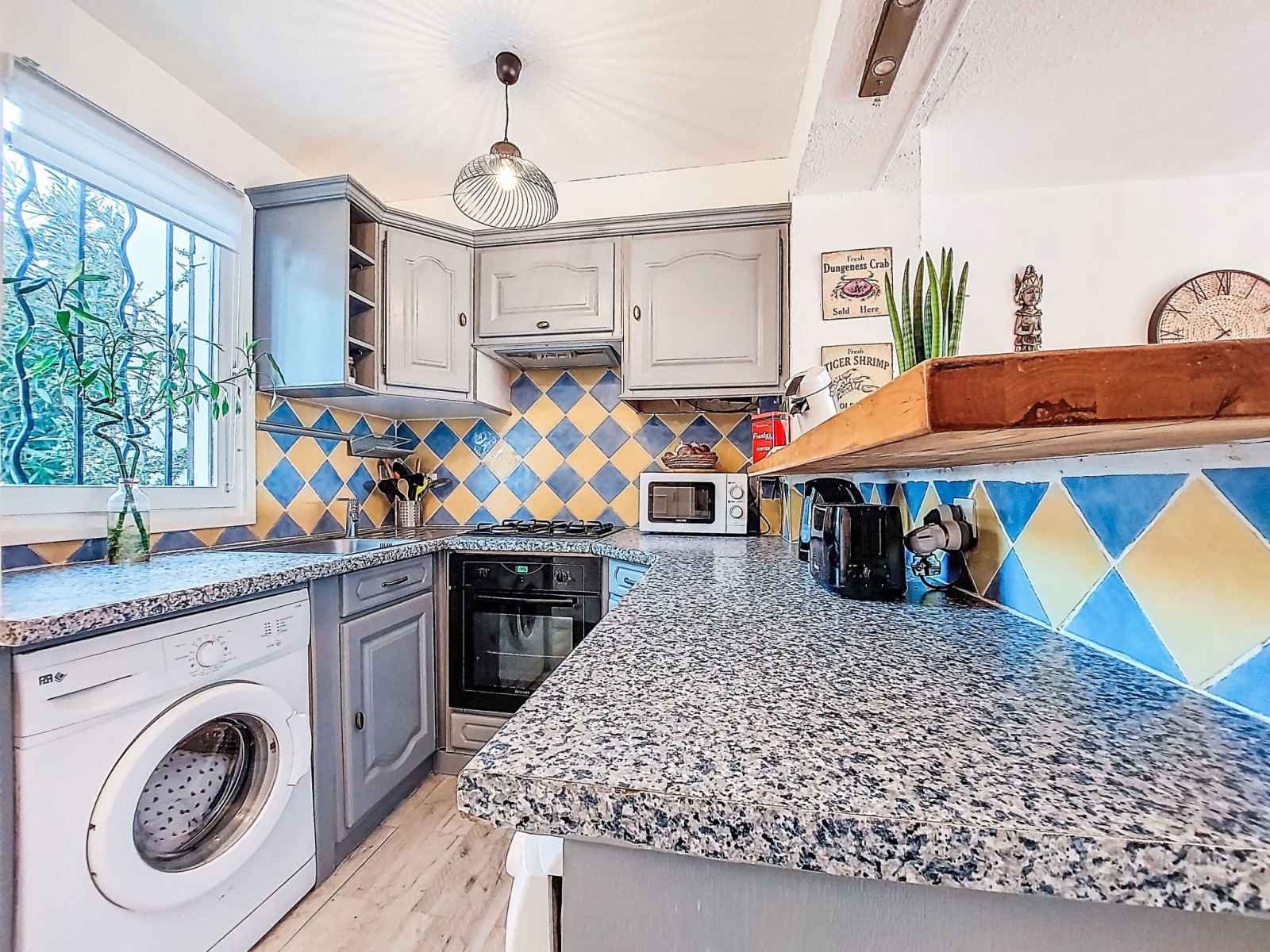 Maison mitoyenne 3 pièces 51 m2 sur 2 niveaux. partiellement rénovée en 2025: séjour/salle à manger avec tv et chaîne stéréo. coin cuisine (4 plaques de cuisson, four, lave-vaisselle, micro-ondes). wc séparé. À l'étage supérieur: 1 chambre avec 1 grand-lit (140 cm, longueur 190 cm). sortie sur le balcon. 1 chambre avec 1 grand-lit