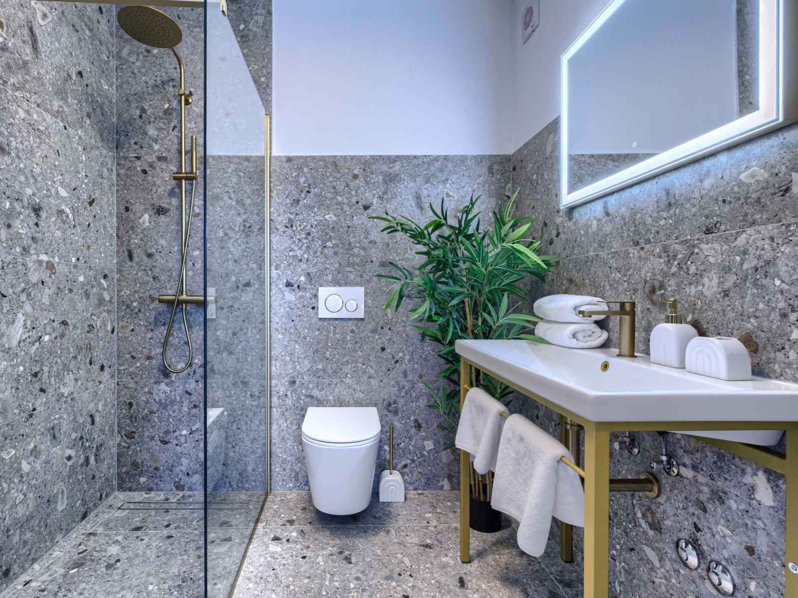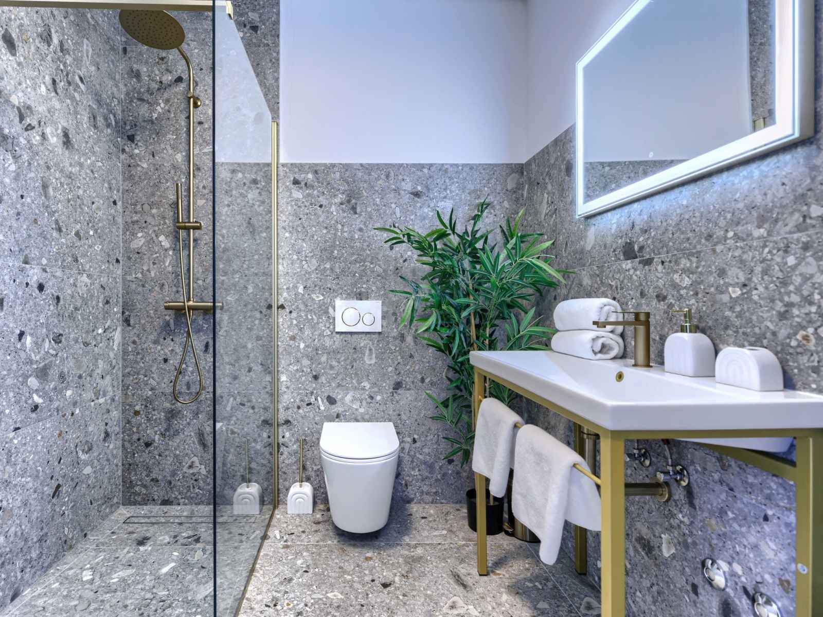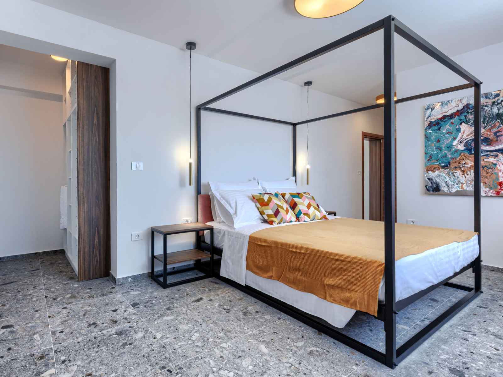 sur la terrasse. WC séparé. À l'étage supérieur: 4 chambres, chaque chambre avec: 1 grand-lit (180 cm, longueur 200 cm), douche/WC et TV (satellite) (écran plat), air-conditionné. A disposition: lave-linge, coffre-fort, chaise haute pour enfant, lit bébé jusqu'à 2 ans, sèche-cheveux. Internet (Connexion WIFI, gratuit).