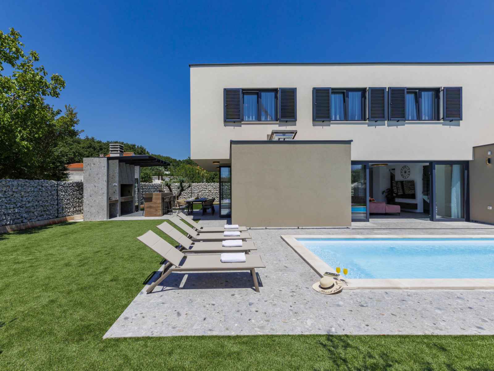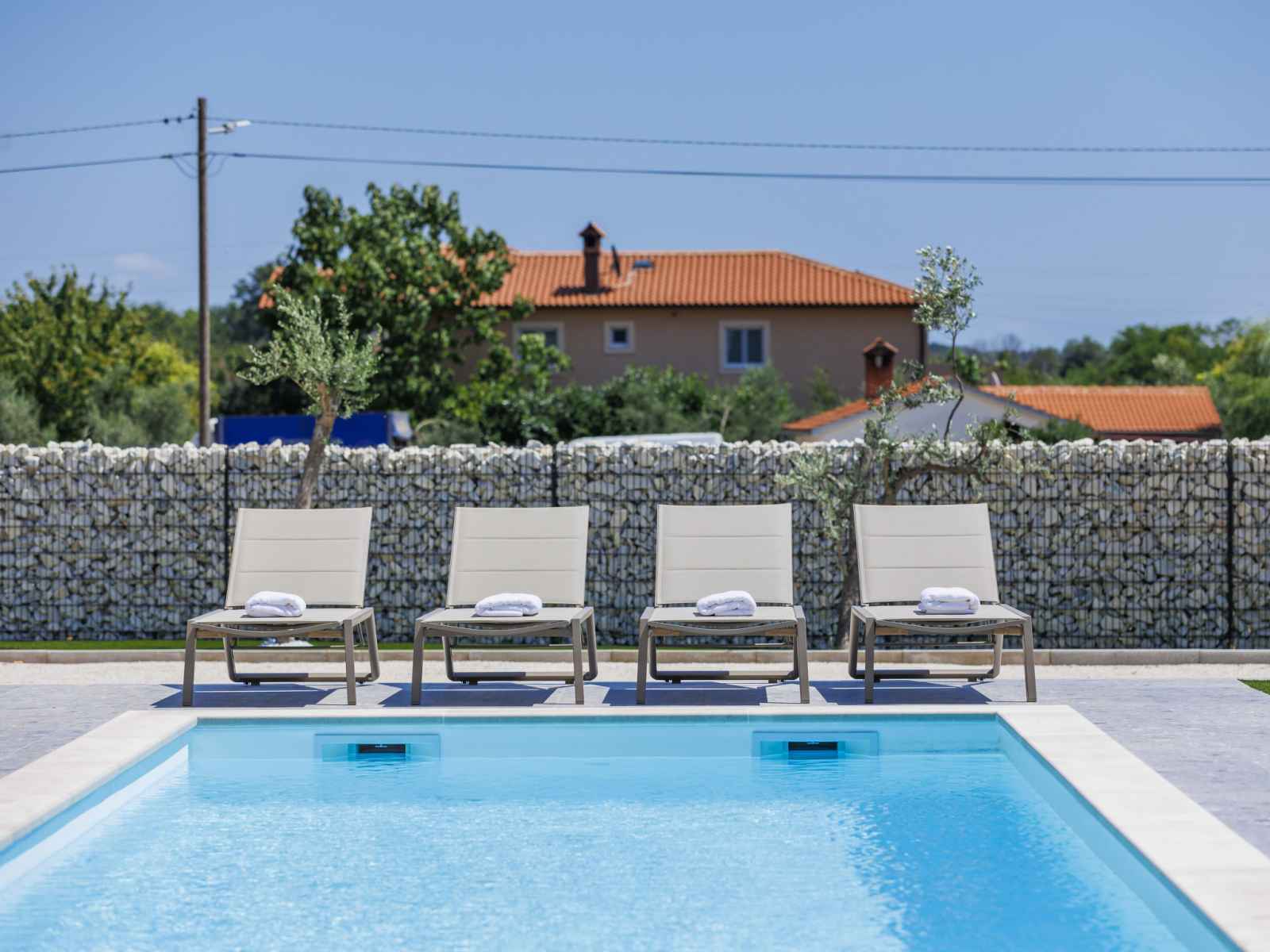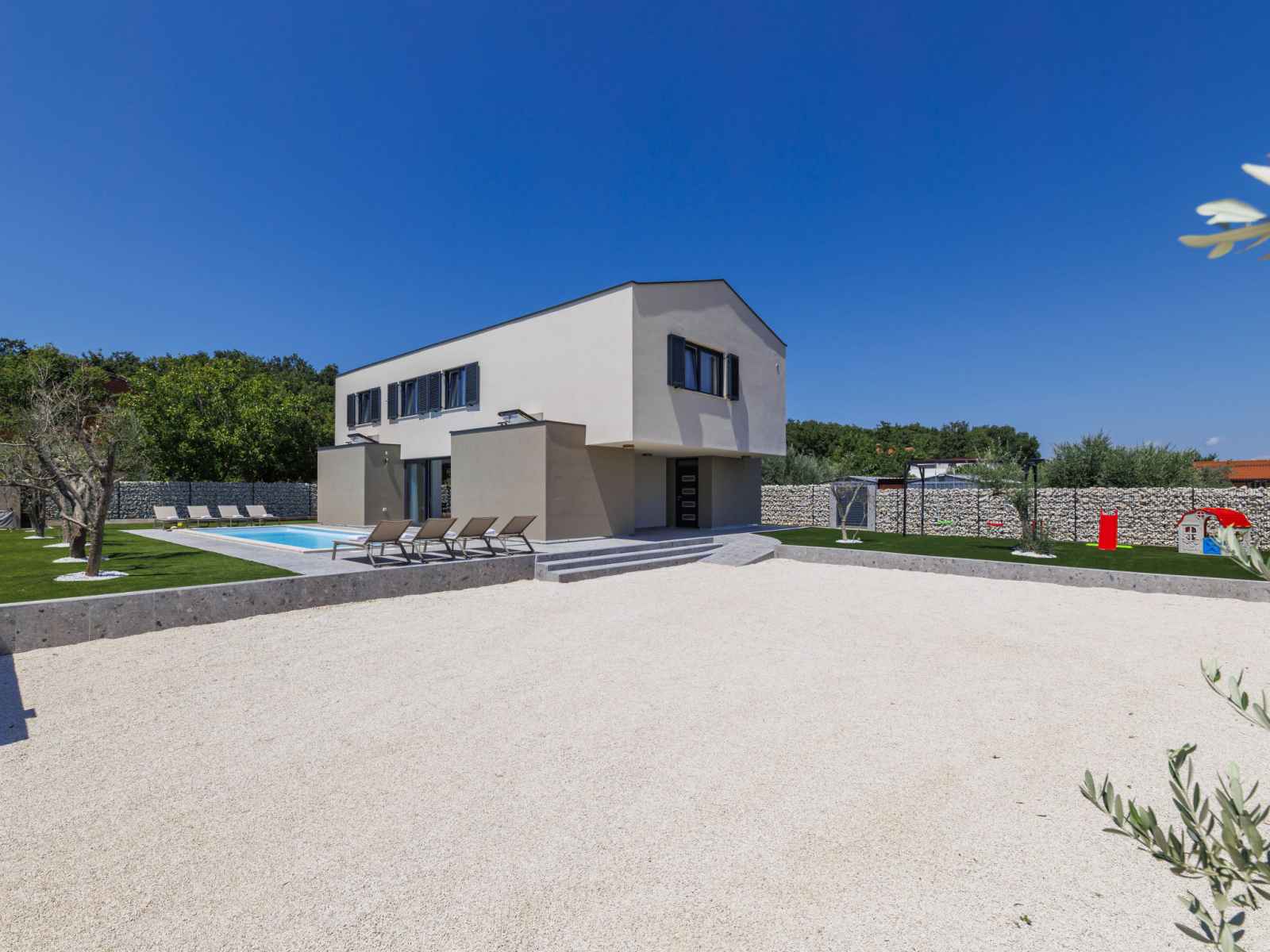 01.avr. - 01.nov.) avec marches intérieures. douche extérieure, terrasse (30 m2), meubles de jardin, barbecue, espace de jeux pour les enfants (toboggan, balançoire), entretien de la piscine par le propriétaire/jardinier. infrastructures de la maison: accès internet, air-conditionné. place de parking (pour 4 voitures) près de la maison sur le terrain. magasins 2.3 km, supermarché 6 km, restaurant 2 km, café 2.3 km, arrêt de bus 2.3 km, plage de sable 16 km plage de graviers 13 km. tennis 15 km, centre équestre 5 km, chemins de randonnées pédestres depuis la maison 100 m, piste cyclable 150 m. attractions à proximité: amphitheater 8 km, national park brijuni 14 km, nature park rt. kamenjak 18 km.