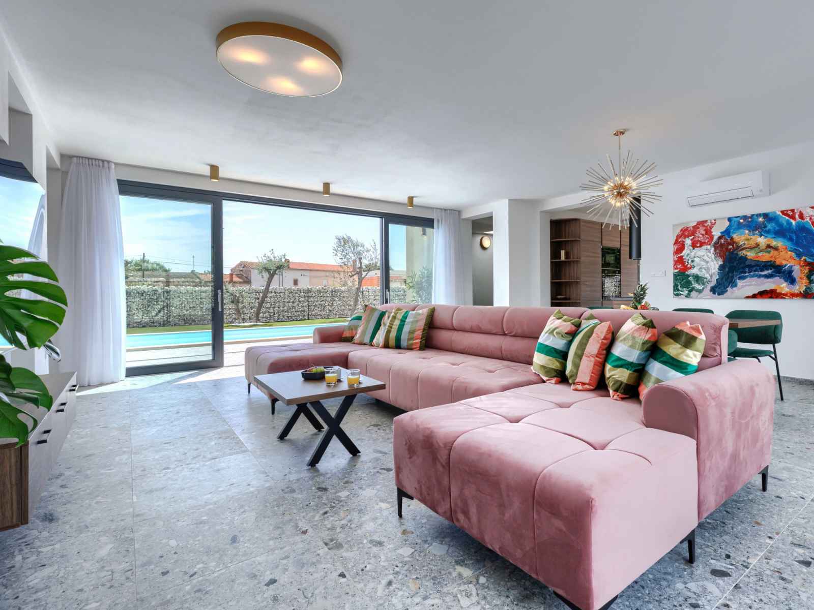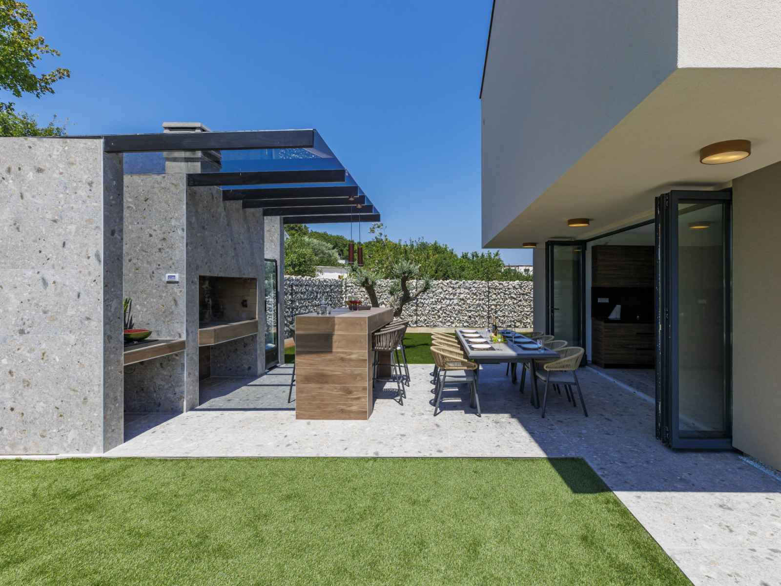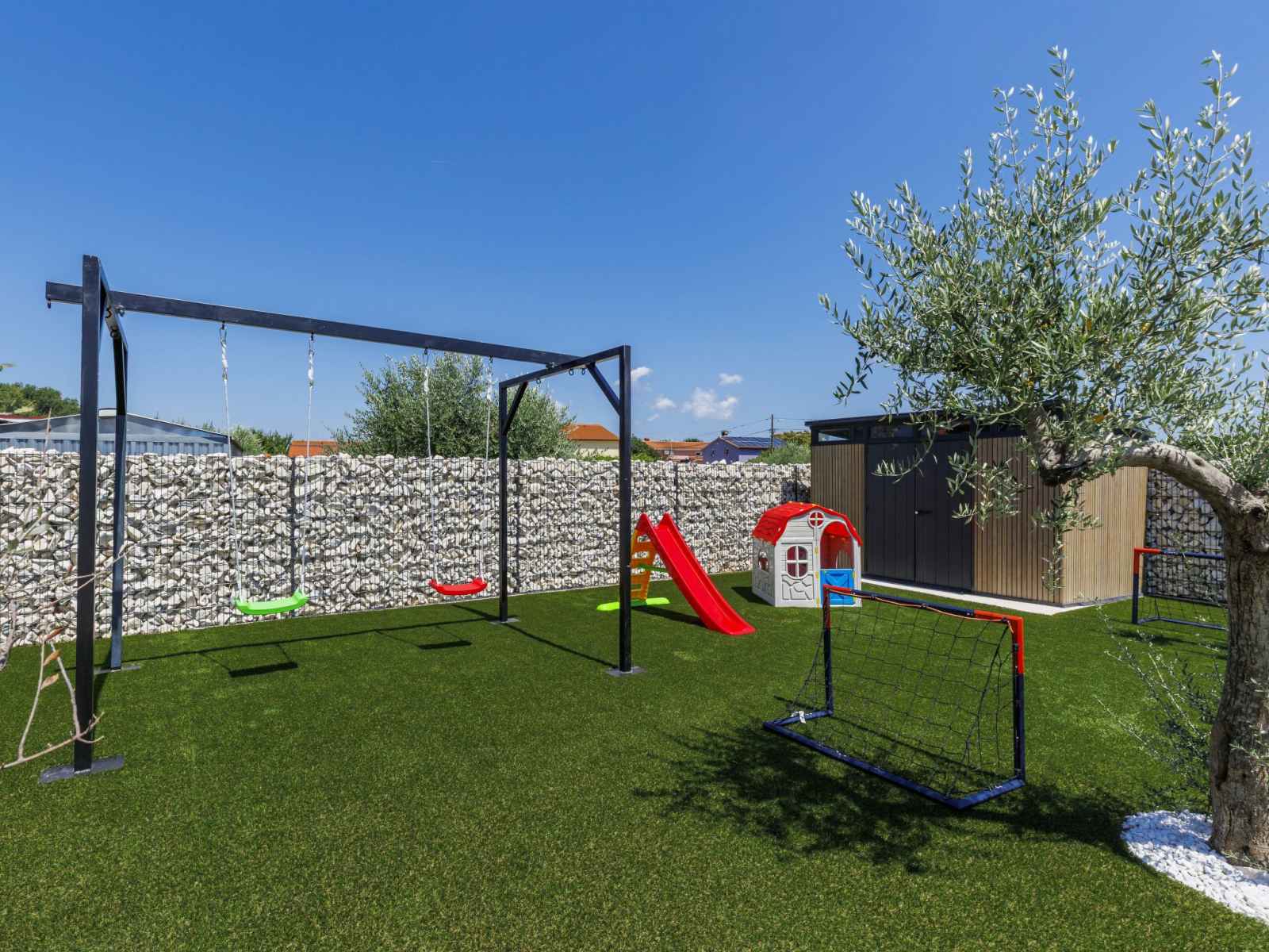 01.avr. - 01.nov.) avec marches intérieures. douche extérieure, terrasse (30 m2), meubles de jardin, barbecue, espace de jeux pour les enfants (toboggan, balançoire), entretien de la piscine par le propriétaire/jardinier. infrastructures de la maison: accès internet, air-conditionné. place de parking (pour 4 voitures) près de la maison sur le terrain. magasins 2.3 km, supermarché 6 km, restaurant 2 km, café 2.3 km, arrêt de bus 2.3 km, plage de sable 16 km plage de graviers 13 km. tennis 15 km, centre équestre 5 km, chemins de randonnées pédestres depuis la maison 100 m, piste cyclable 150 m. attractions à proximité: amphitheater 8 km, national park brijuni 14 km, nature park rt. kamenjak 18 km.