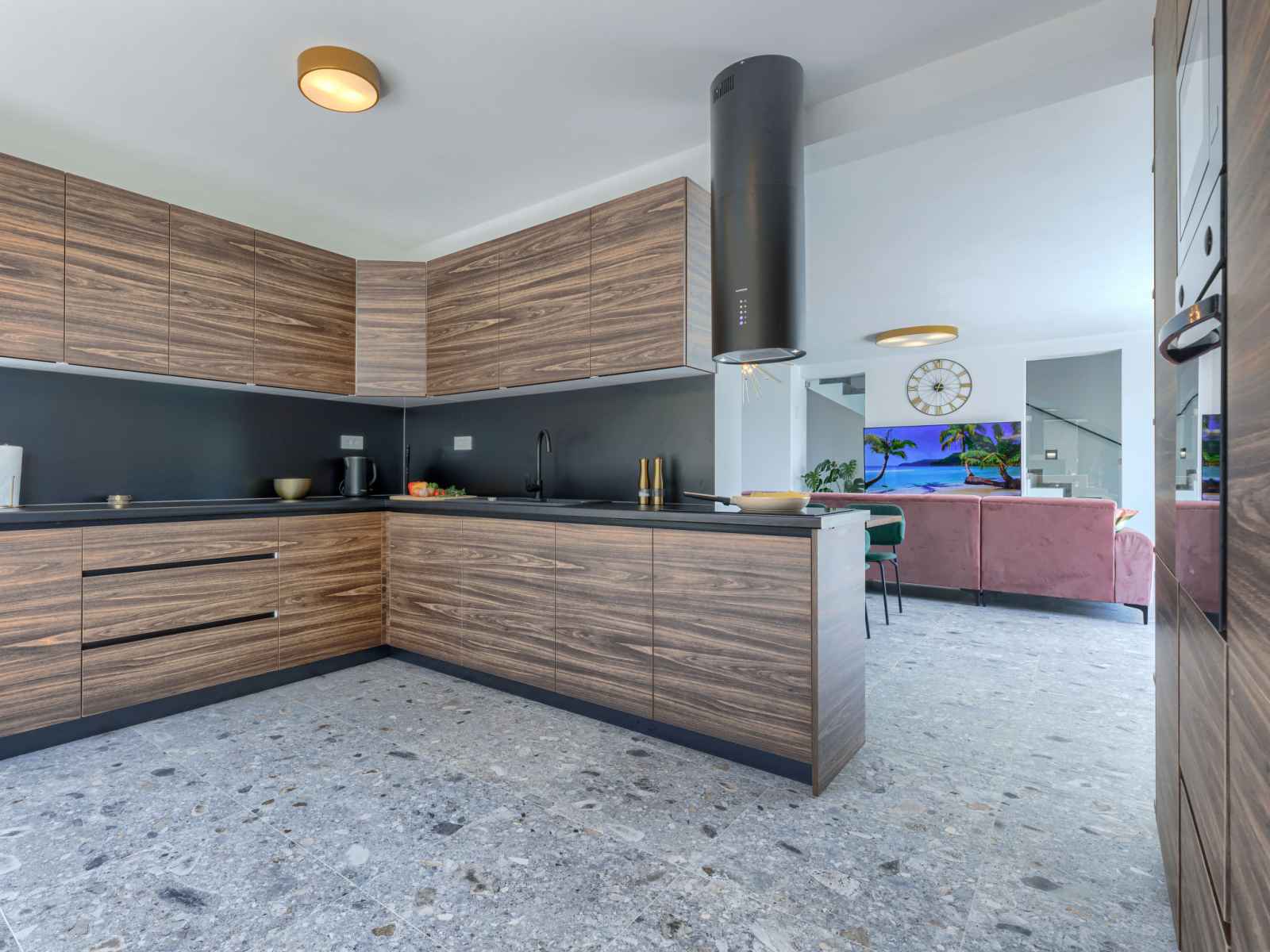Villa 5 pièces 150 m2 sur 2 niveaux. aménagement agréable et de bon goût: séjour/salle à manger 65 m2 avec tv (satellite) (écran plat), air-conditionné. sortie sur la piscine. cuisine ouverte (four, lave-vaisselle, 4 plaques vitrocéramiques, grille-pain, bouilloire électrique, micro-ondes, congélateur, cafetière électrique). sortie