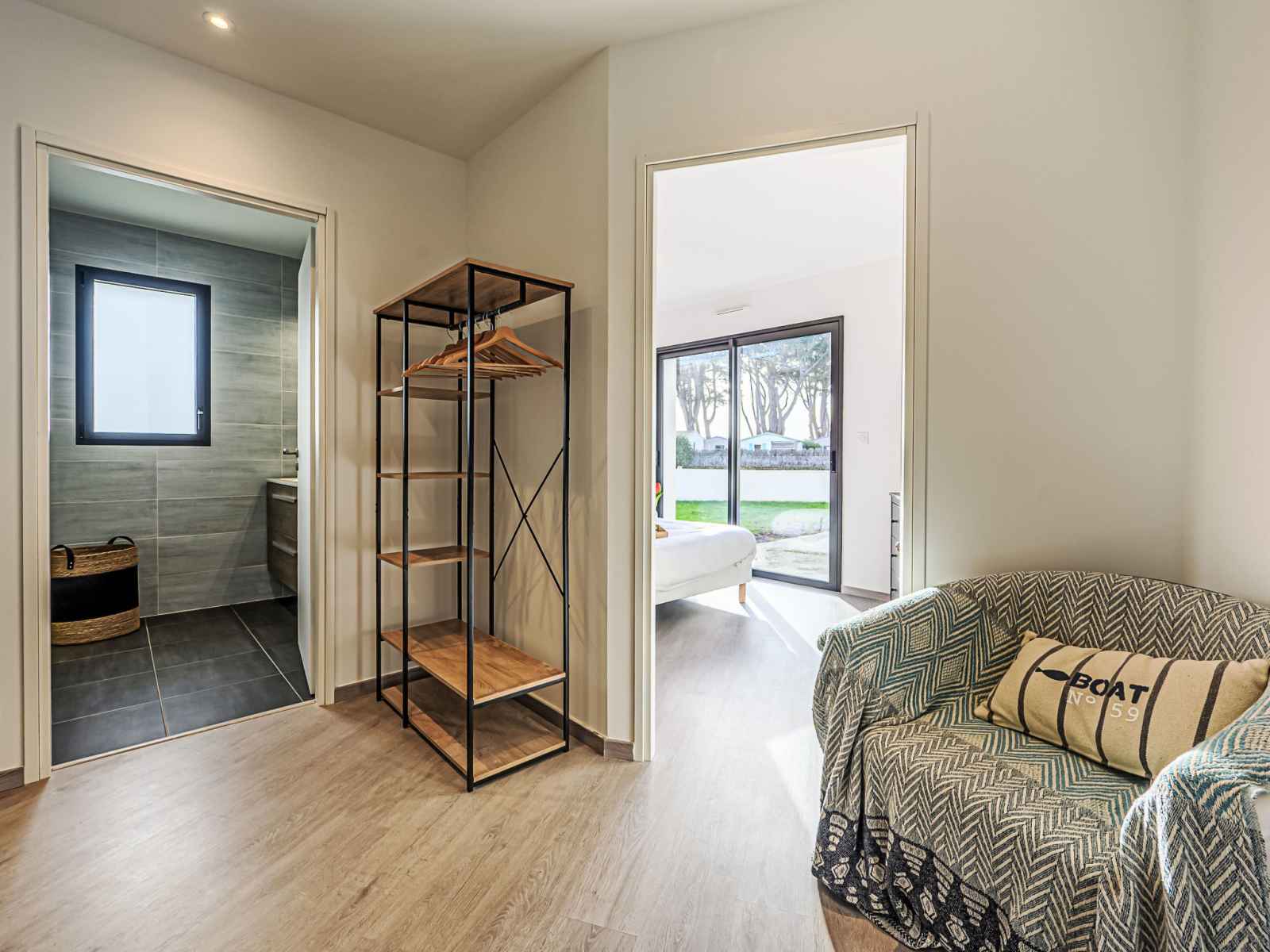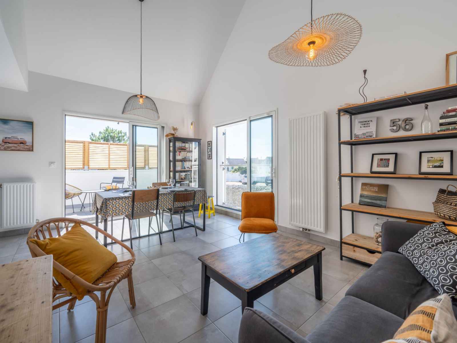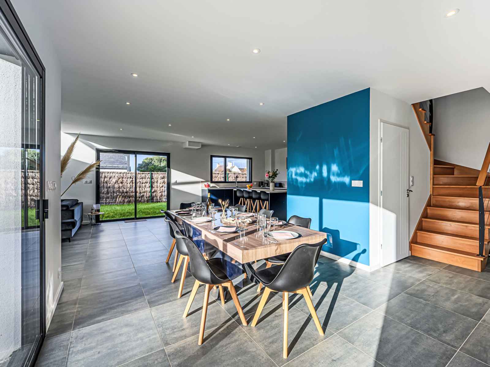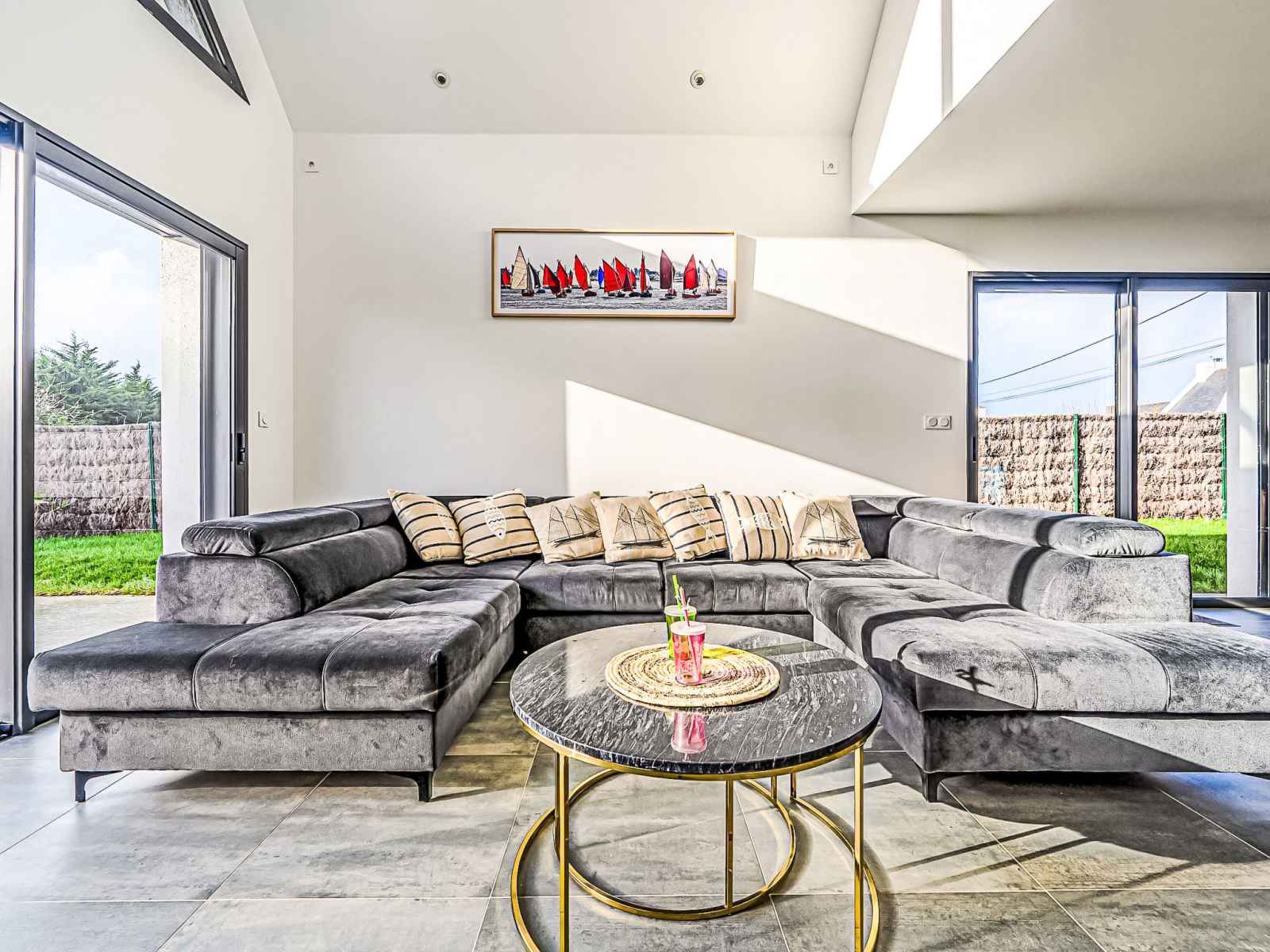 St pierre quiberon à 4 km de quiberon: belle maison individuelle "les voiles", année de construction 2023. dans la localité, à 1 km du centre de saint pierre de quiberon, à 600 m de la mer, à 600 m de la plage. a usage privé: jardin entretenu 300 m2 (pas clôturé) pelouse, place de parking sur le terrain. magasins 2 km, supermarché 3 km,