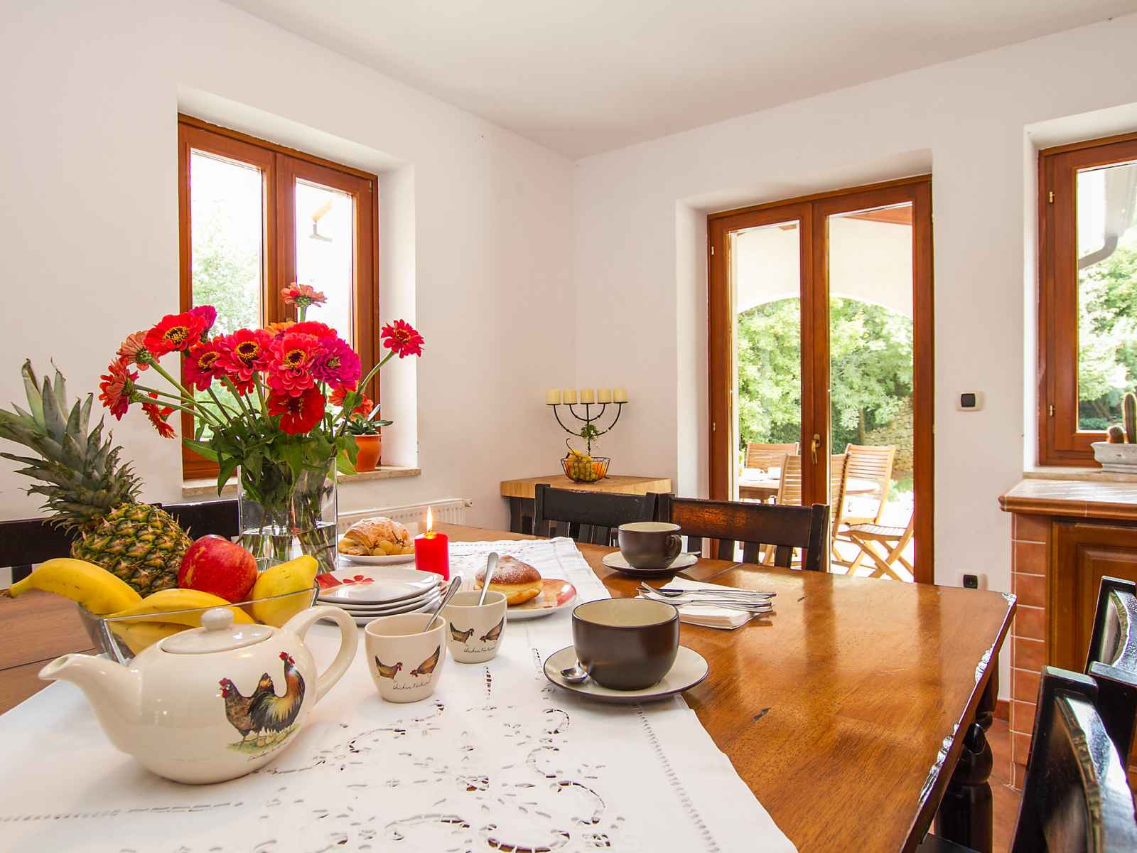 disponibilité saisonnière: 06.mai. - 16.sep.) avec marches intérieures. douche extérieure, pool house, meubles de jardin, barbecue. a usage privé: jardin 600 m2 avec pelouse et arbres. infrastructures de la maison: chauffage central, air-conditionné. accès en voiture (100 m chemin non goudronné, rampe). place de parking près de la maison sur le terrain. magasins 4 km, restaurant 4 km, arrêt de bus 14.8 km, plage de graviers 4 km, plage de rochers 4 km. en commun : 2 piscines (13 x 4 m, 8,5 x 4,5 m).