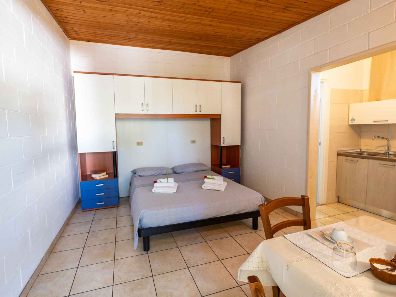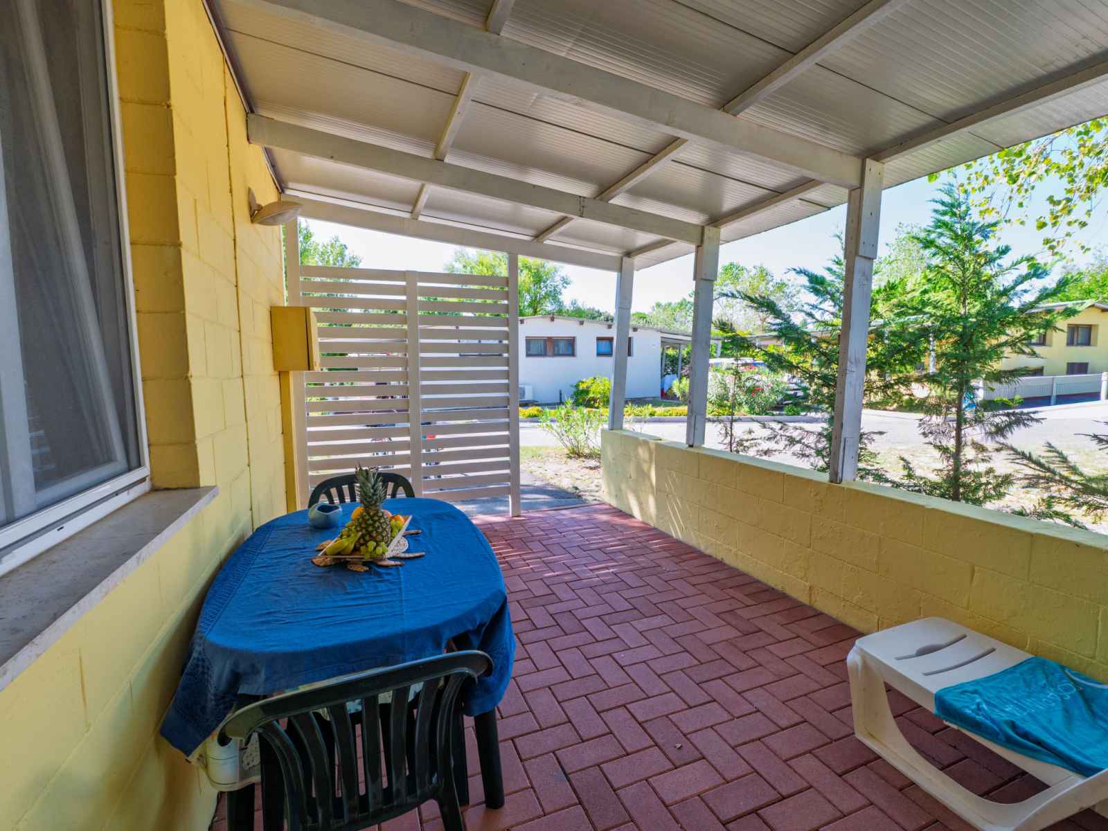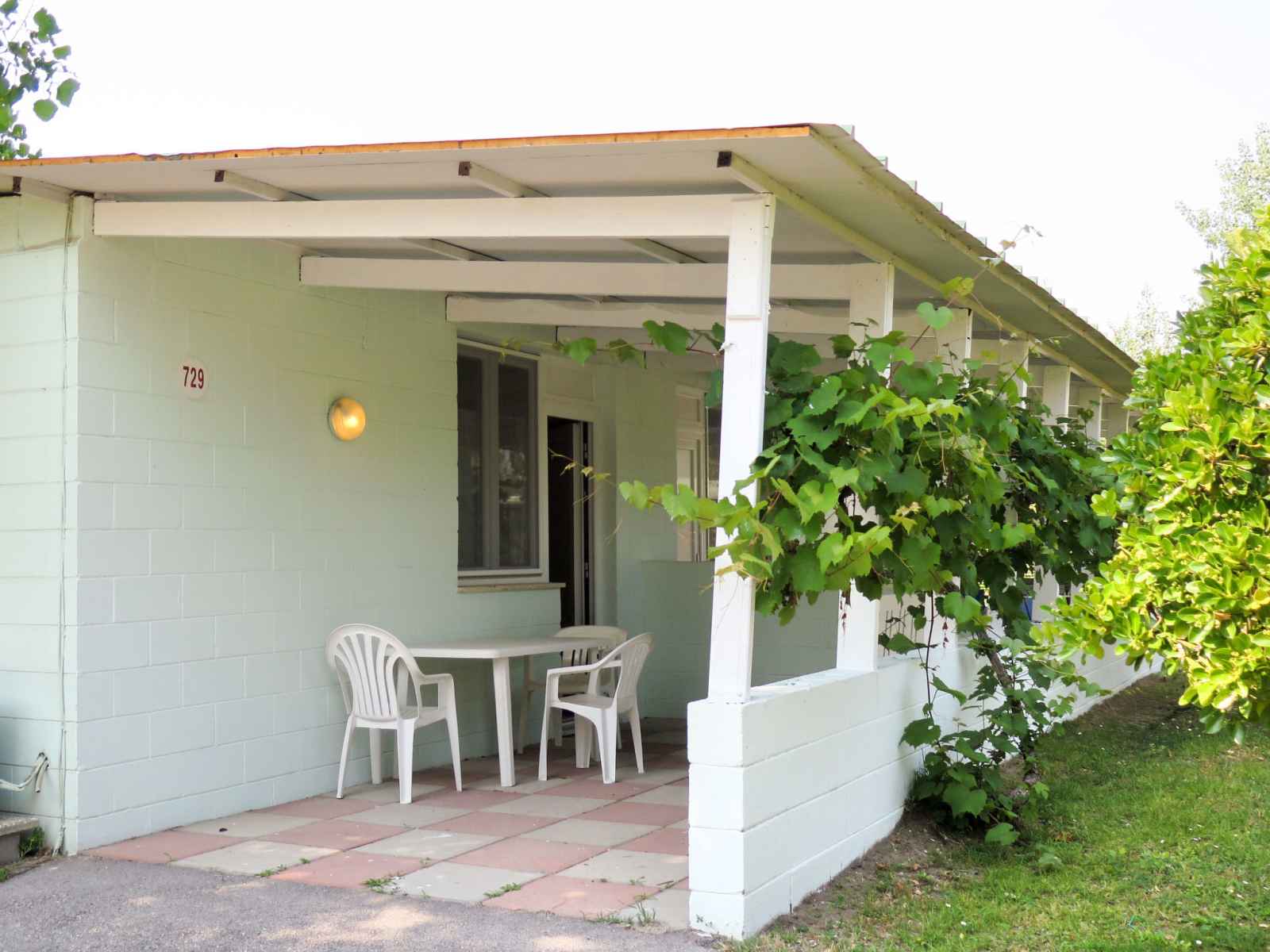 Bungalow studio 20 m2. aménagement fonctionnel: séjour/chambre à coucher avec 1 lit double, 1 lit pliant, table pour les repas, coin-cuisine et tv (satellite). sortie sur la terrasse. coin cuisine (4 feux, micro-ondes, congélateur). douche/wc. air-conditionné, chauffage à air chaud. terrasse 12 m2, couverte. meubles de terrasse, chaises