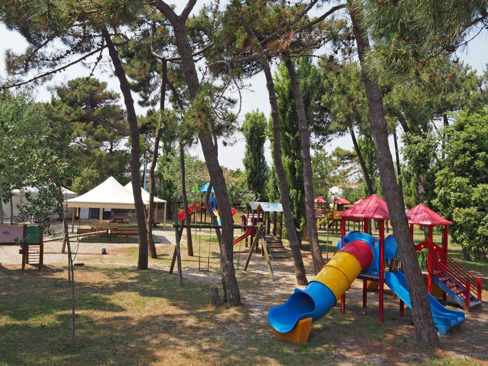 Grand village de vacances accueillant pour les enfants "rosapineta sud". 260 maisons dans le même complexe de vacances. À 400 m du centre de rosolina mare, à 22 km du centre de chioggia, à 70 km du centre de venezia, à 100 m de la mer, à 100 m de la plage, accès direct à la plage. en commun: terrain 6 ha (clôturé) avec plantes et arbres,