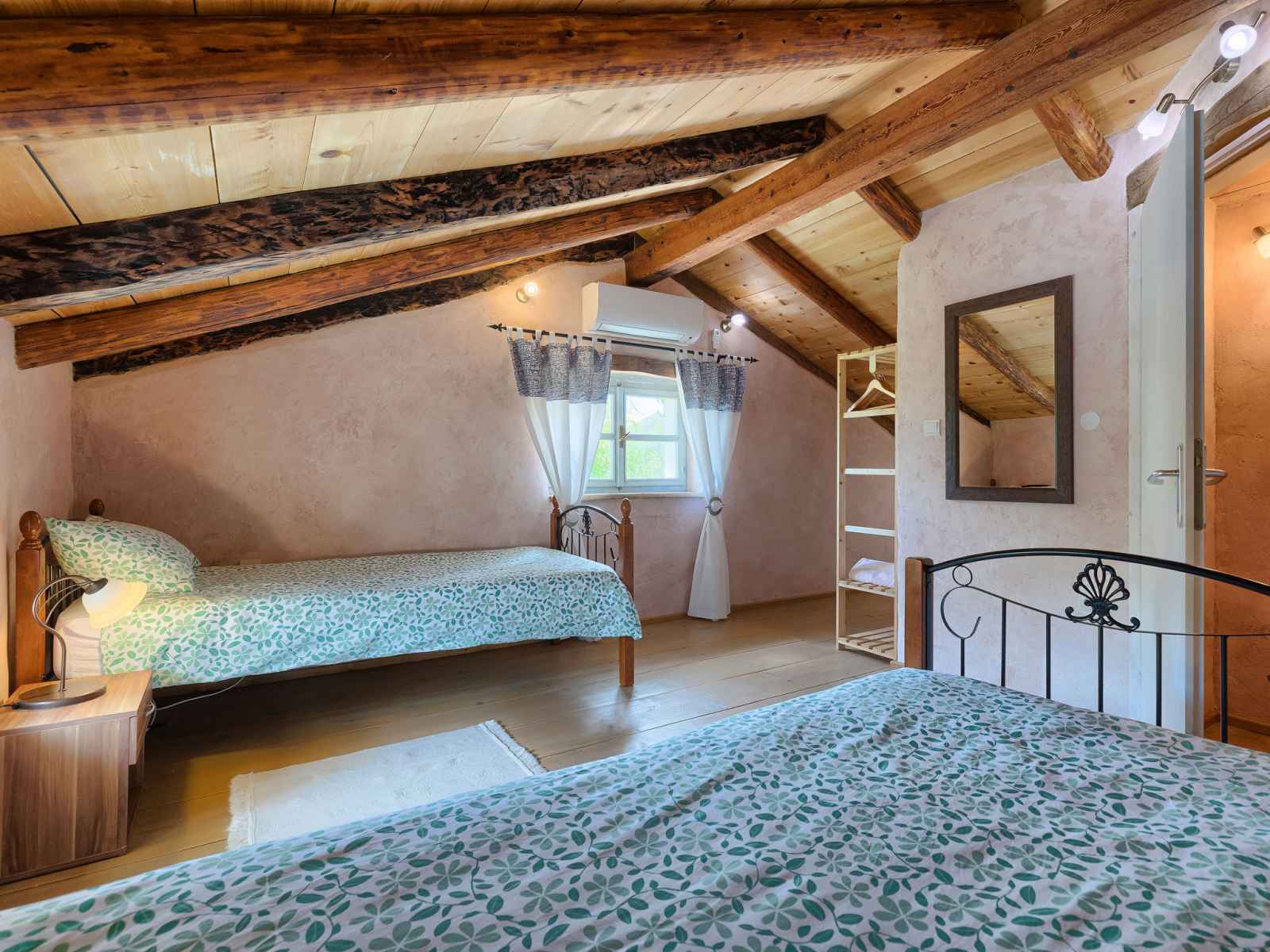 congélateur, cafetière électrique). Sortie sur la terrasse. Douche/WC. Chauffage, air-conditionné. À l'étage supérieur: 1 chambre, mansardée avec 1 grand-lit (160 cm), air-conditionné. 1 chambre, mansardée avec 2 lits et air-conditionné. Douche/WC. Chauffage, air-conditionné. Chaises longues. A disposition: lave-linge, fer à repasser, chaise haute pour enfant. Internet (Connexion WIFI, gratuit). Veuillez noter: logement non-fumeur.