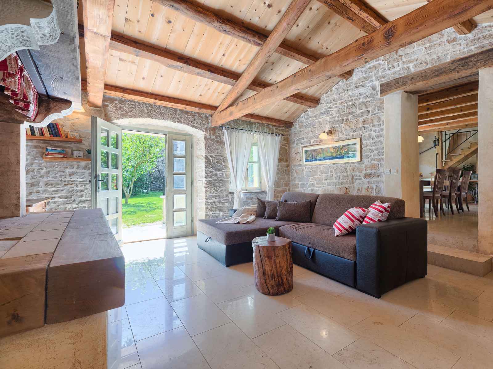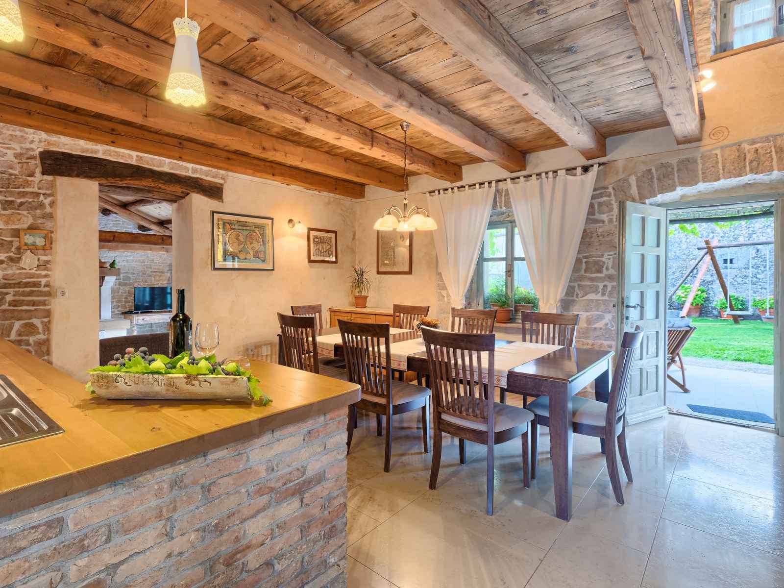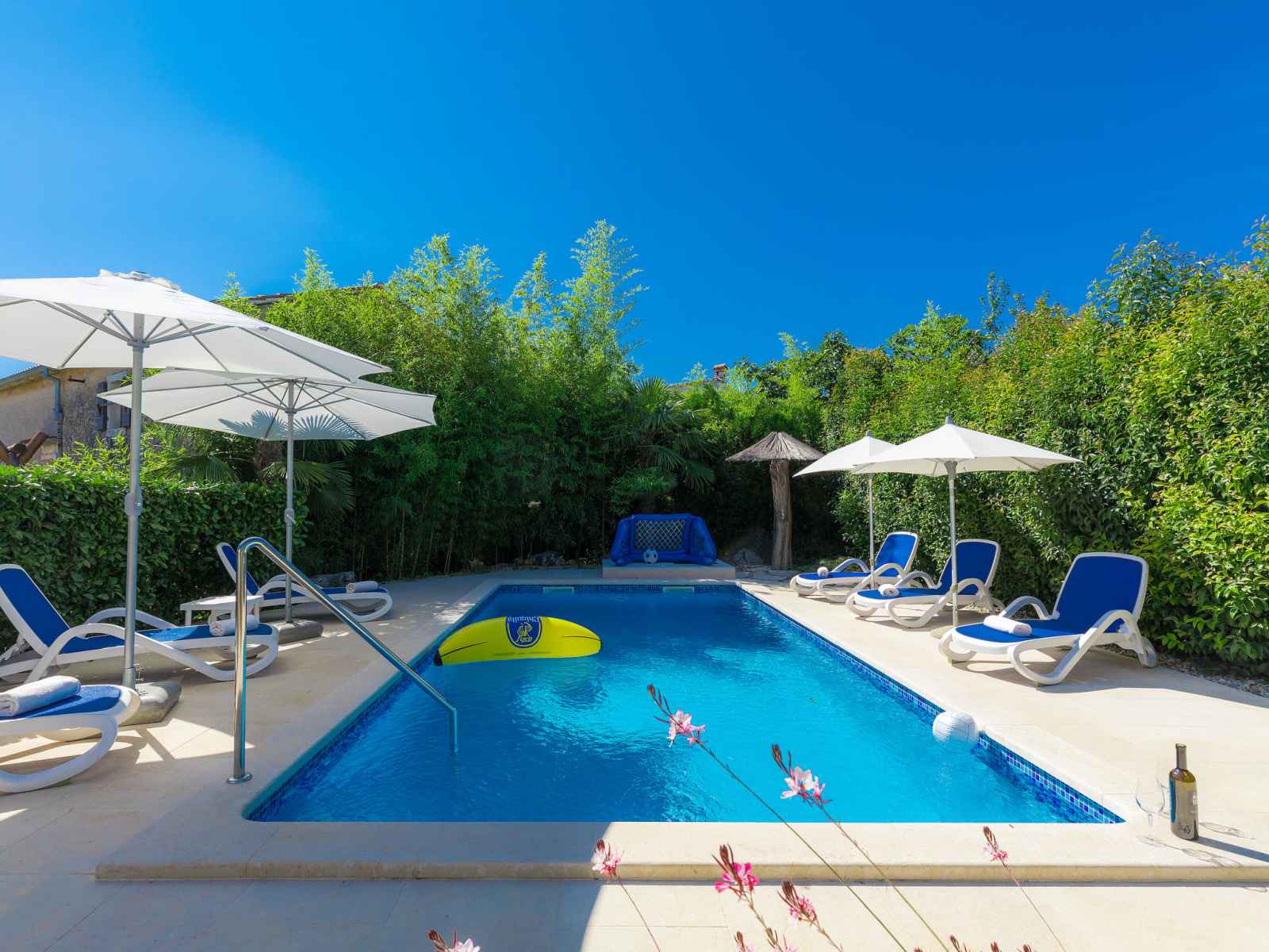 Maison individuelle "hrelja". À 5 km du centre de zminj, à 15 km du centre de pazin, à 25 km du centre de rovinj, à 25 km de la mer. a usage privé: terrain 1'800 m2 (clôturé) avec pelouse et arbres, piscine (7 x 3 m, 24 m2, profondeur 135 cm, disponibilité saisonnière: 01.mai. - 05.nov.). douche extérieure, ping-pong, volley ball,