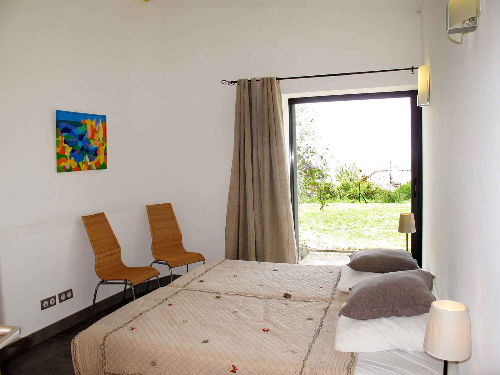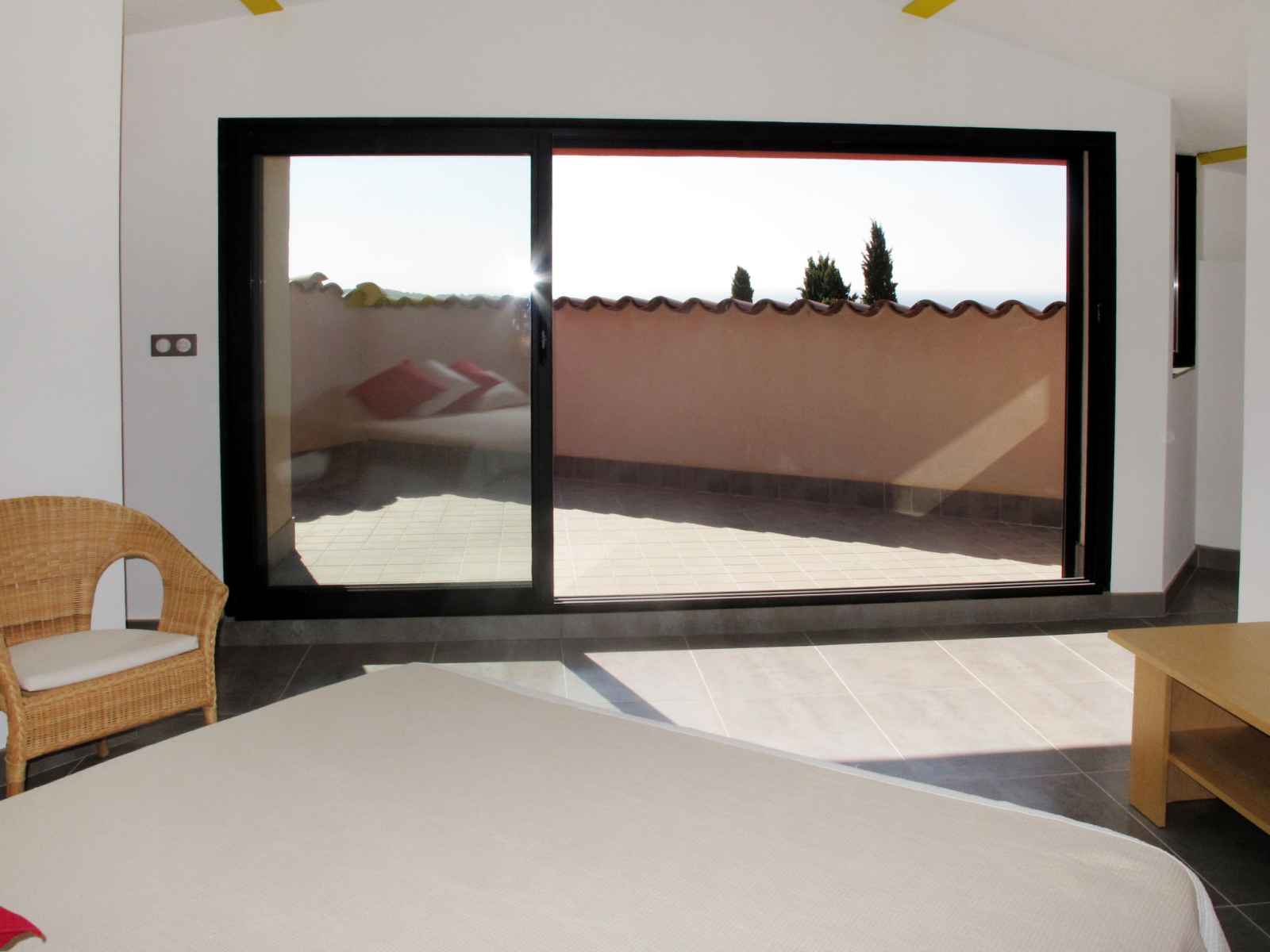 1 chambre avec 2 lits (90 cm), air-conditionné. Sortie sur la terrasse. Cuisine ouverte (four, lave-vaisselle, 4 plaques vitrocéramiques, grille-pain, bouilloire électrique, micro-ondes, congélateur, cafetière électrique) avec table pour les repas. Sortie sur la terrasse. Bain/WC, WC séparé, double vasque. À l'étage supérieur: 1 chambre avec Dressing avec 1 grand-lit (160 cm), douche/WC, double vasque et air-conditionné. Sortie sur la terrasse. Chauffage par le sol. Grande terrasse partiellement couverte. Meubles de terrasse, barbecue, chaises longues (8). Très belle vue sur la mer et Bandol, Ile de Bendor. A disposition: lave-linge, fer à repasser, chaise haute pour enfant, lit bébé. Internet (Connexion WIFI, gratuit). Veuillez noter: maximum 1 animal/ chien autorisé. Détecteur de fumée. Si le nombre d’occupants n’atteint pas le maximum, toutes les chambres ne seront pas disponibles. 83123001177O3