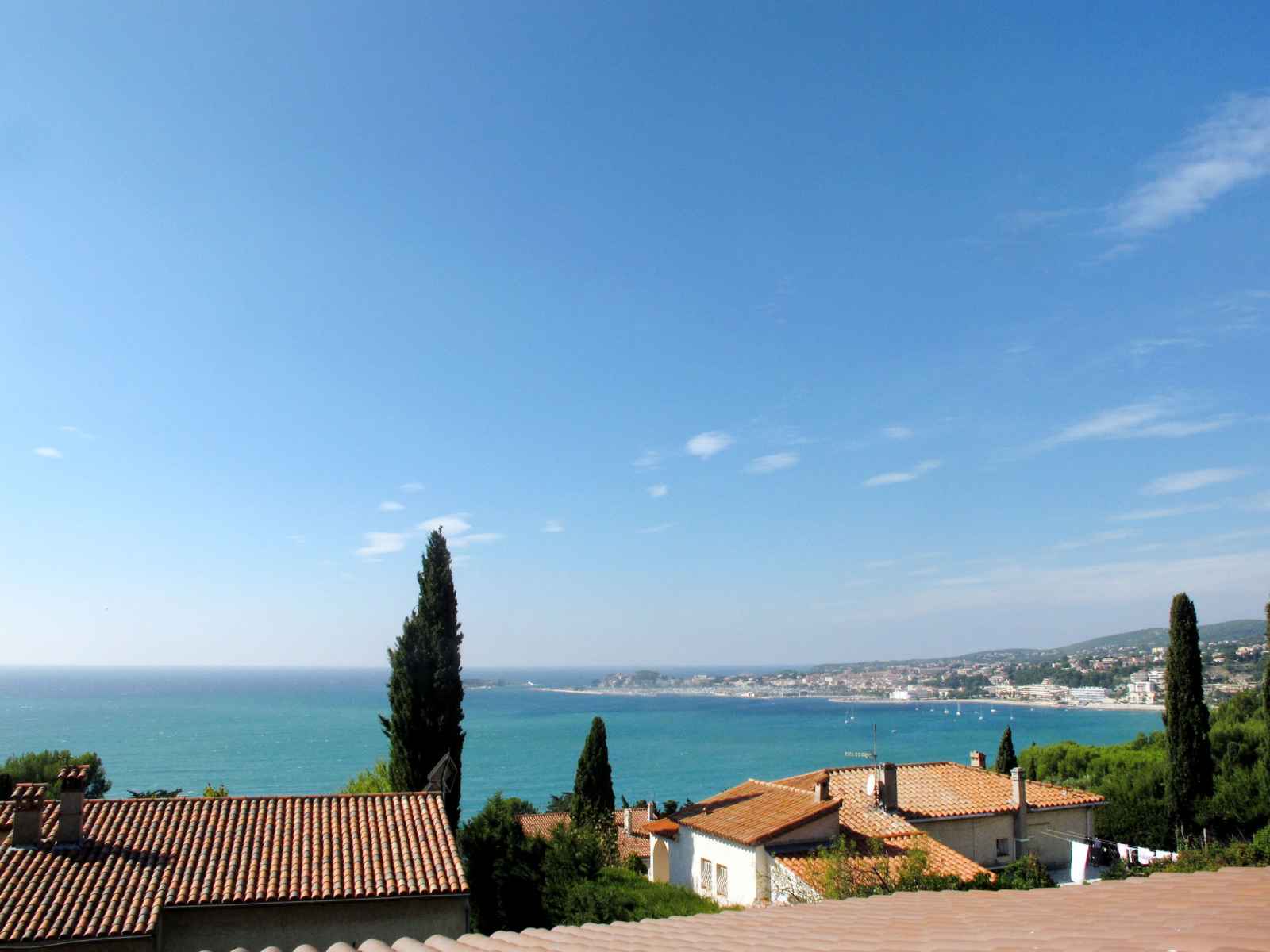 Belle maison moderne, confortable "baie de bandol". À 3 km du centre de sanary-sur-mer, à 4 km du centre de bandol, à 18 km du centre de toulon, situation surélevée sur un versant, quartier résidentiel, à 1 km de la mer. a usage privé: beau jardin sur plusieurs niveaux entretenu 2'300 m2 avec plantes et arbres, champ, piscine (11 x 4 m,