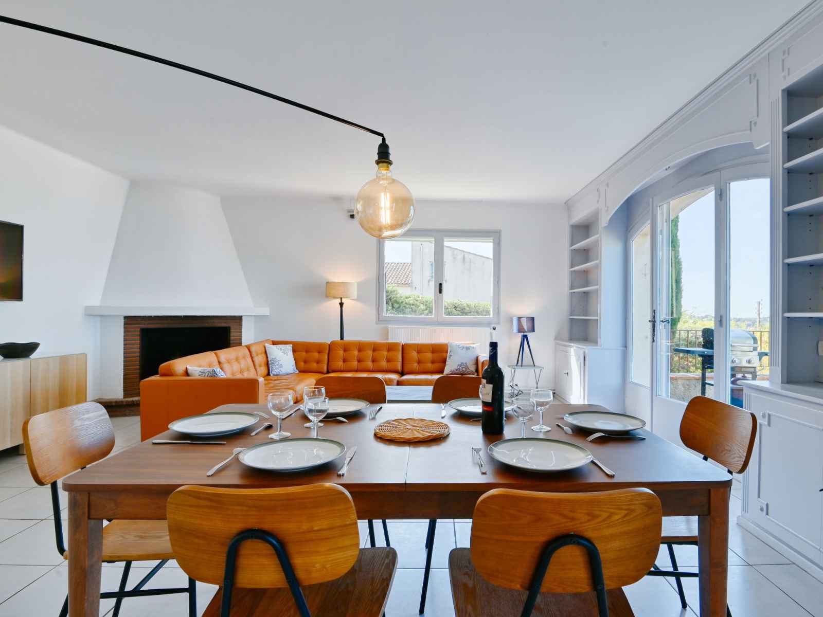 "la maison de l'amiral", maison 5 pièces 130 m2. aménagement confortable: grand séjour/salle à manger avec cheminée, table pour les repas et tv (écran plat). 1 chambre avec 1 grand-lit (160 cm, longueur 190 cm). 2 chambres, chaque chambre avec: 2 lits (90 cm, longueur 190 cm). cuisine (four, lave-vaisselle, 4 plaques à induction,