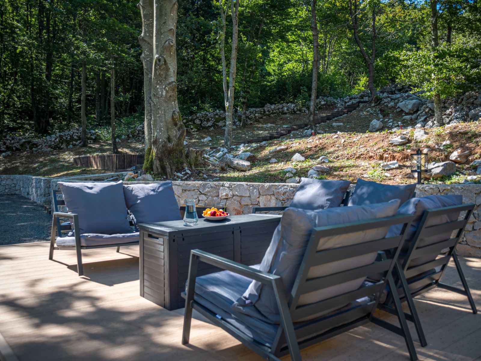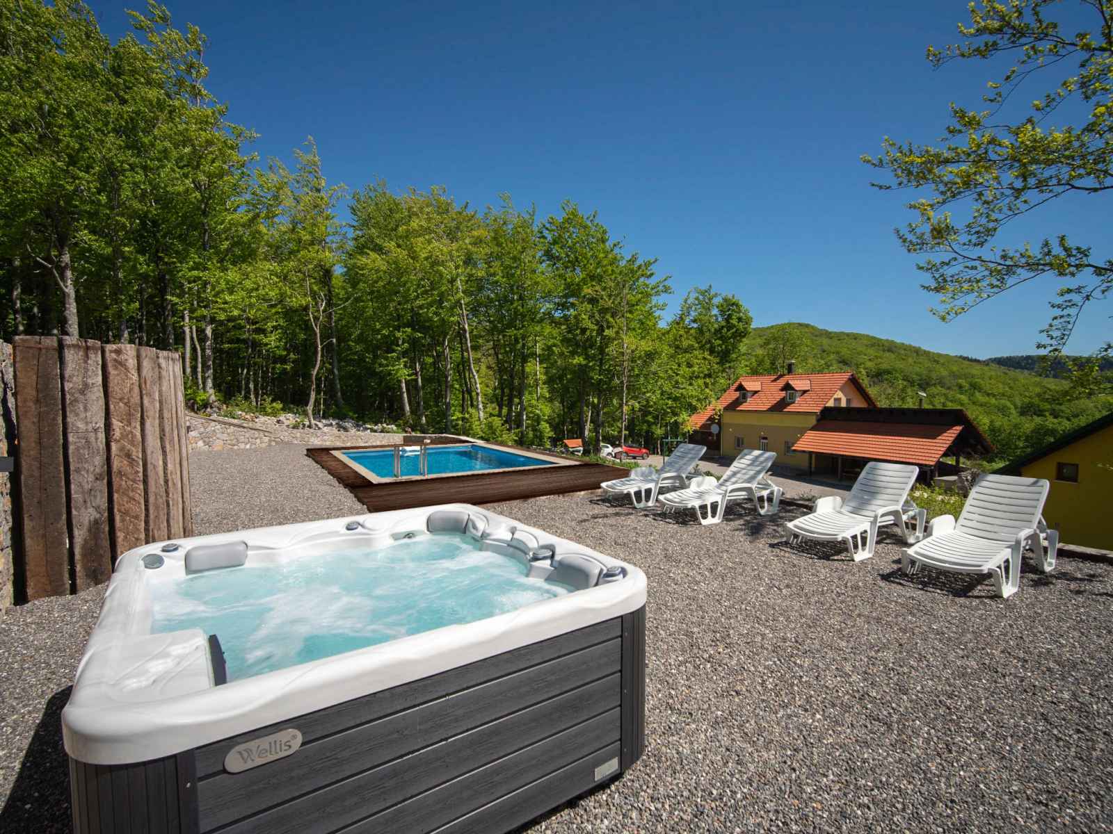 Chalet "didova suma 2", de 2 étages, environné par les arbres. dans le haut de la station de senj, dans le hameau d'alan, à 19 km du centre de senj, situation isolée, tranquille, à 19 km de la mer, dans la forêt. en commun: terrain 5'000 m2 avec arbres. terrain de pétanque. a usage privé: terrain 3'000 m2, piscine rectangulaire (6 x 4 m,