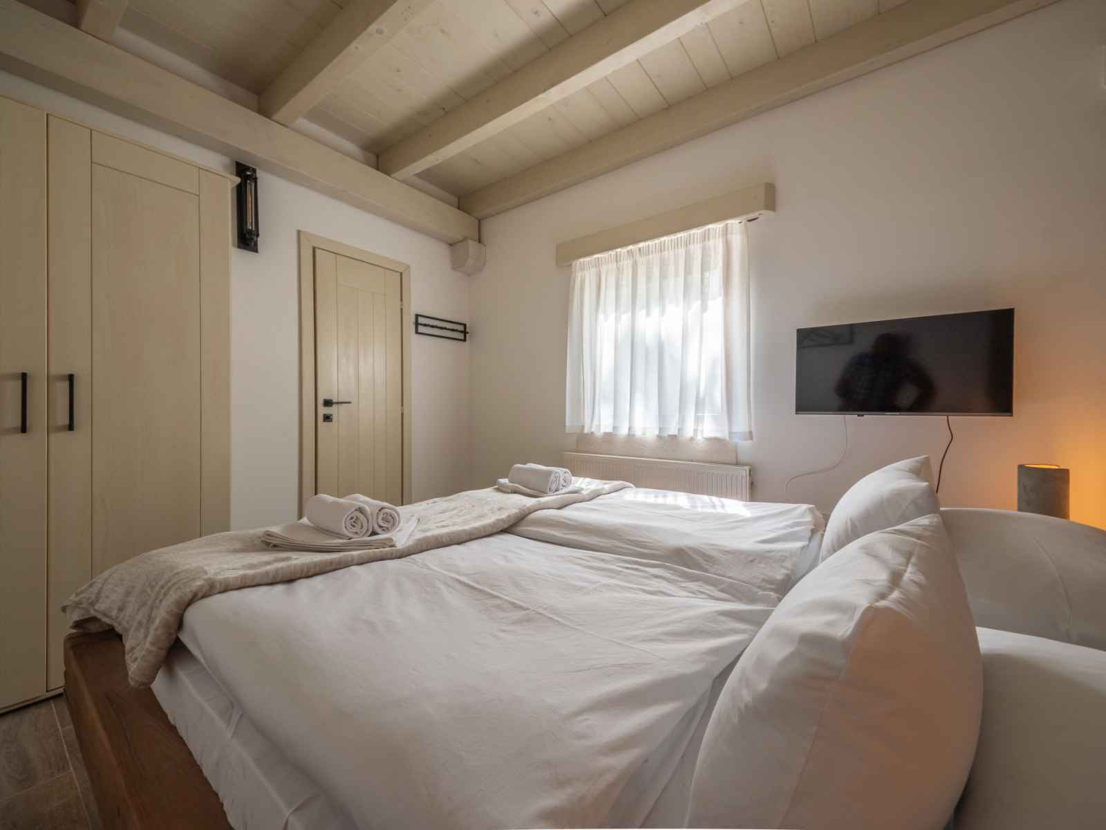 électrique, micro-ondes, congélateur, cafetière électrique). Bain/bidet/WC. Sous le toit: (escalier en colimaçon) 1 chambre, mansardée hauteur plafond 130 - 240 cm avec 1 lit double (2 x 90 cm, longueur 200 cm), TV (satellite). 1 chambre, mansardée hauteur plafond 130 - 240 cm avec 2 lits (90 cm, longueur 200 cm), TV (satellite). Douche/WC, douche/bidet/WC. Chauffage au bois. Chaises longues. Vue sur les montagnes. A disposition: bois (gratuit). Internet (Connexion WIFI, gratuit). Veuillez noter: maison non-fumeur.