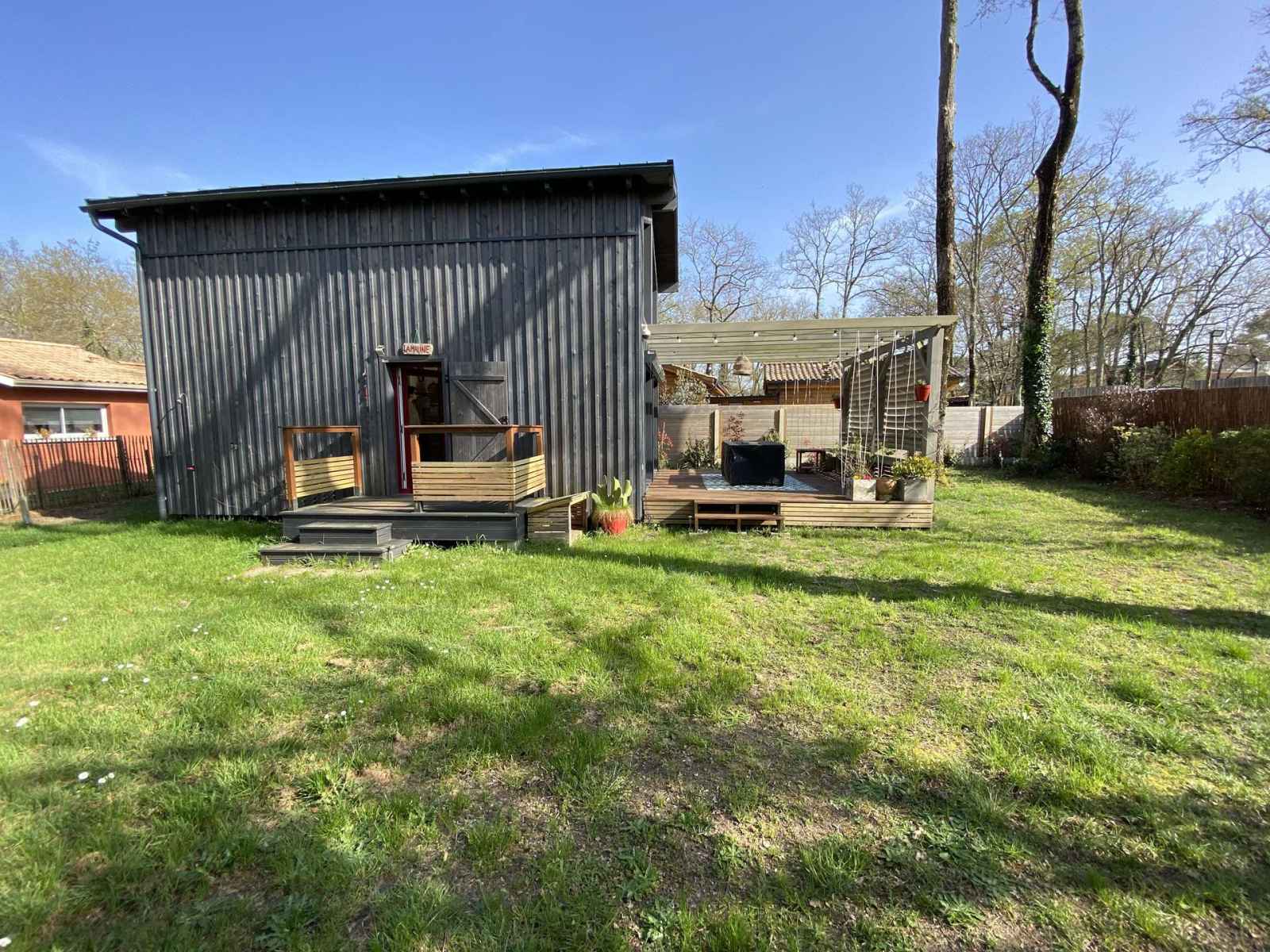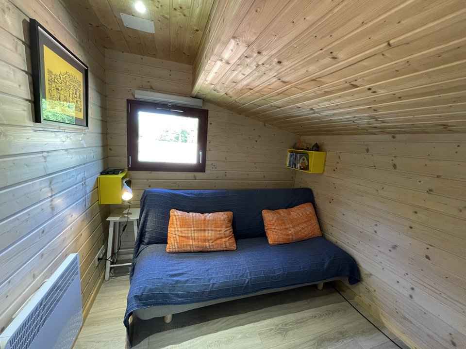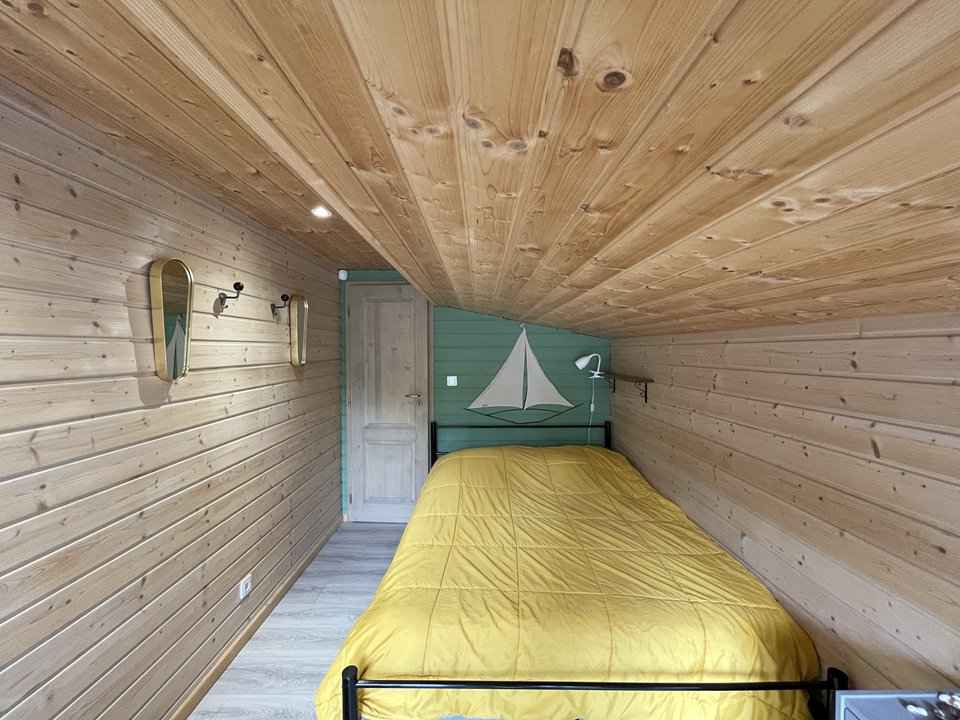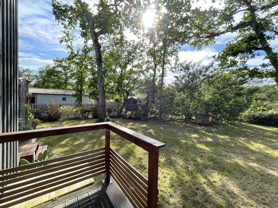 90 cm et rangements. Son extérieur clôturé est équipé d'une terrasse en bois avec salon de jardin et toile d'ombrage, barbecue, cabane en bois pour enfant, transats, 2 vélos adultes et 1 vélo enfant, etc... Caution à régler sur place. Chèques vacances acceptées.