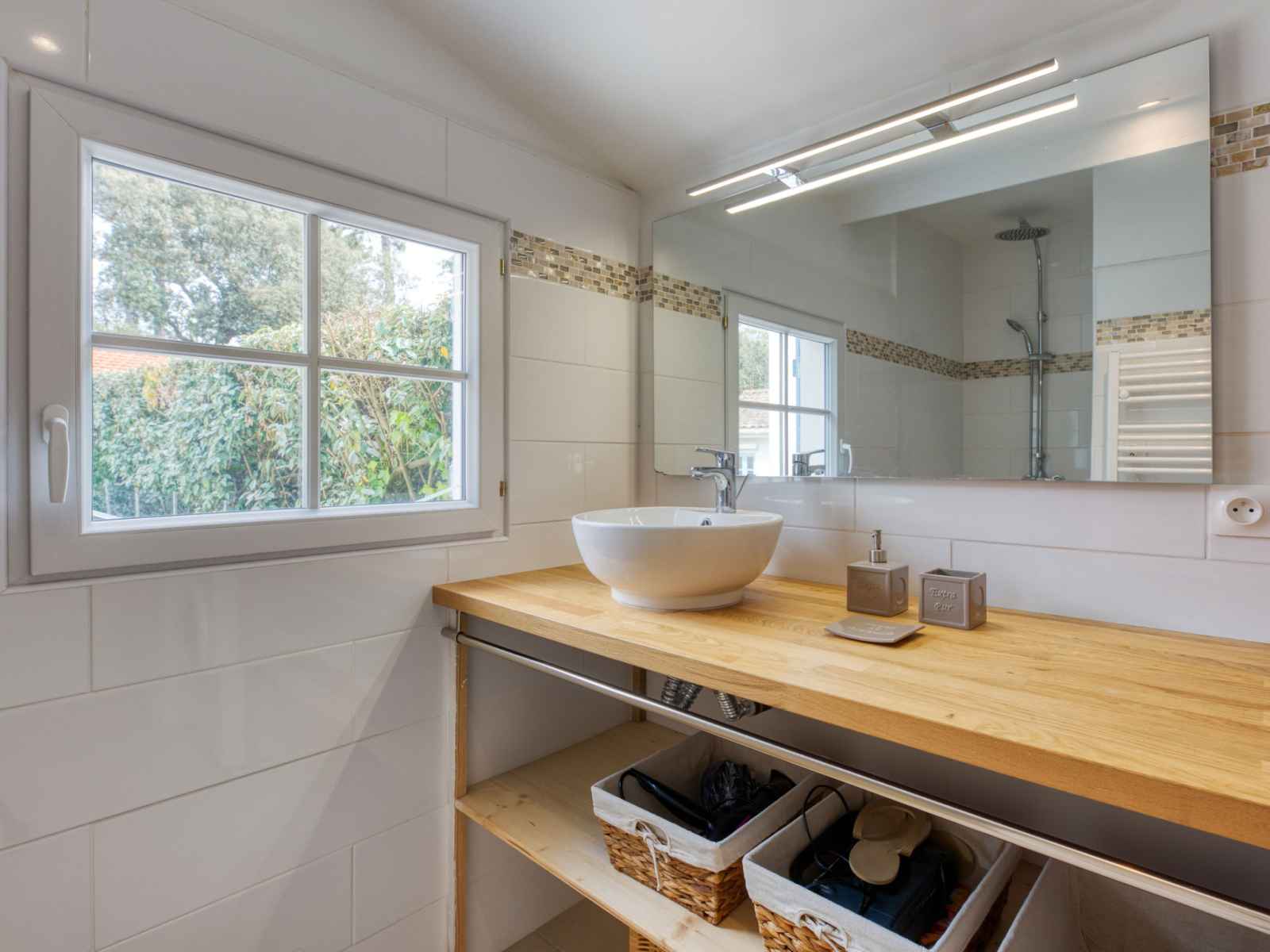 Belle maison individuelle "l'ensouleihado", rénovée en 2022. location composée d'un bâtiment principal et d'une annexe, à 1 km du centre de soulac-sur-mer, à 30 km du centre de lesparre, à 95 km du centre de bordeaux, dans un quartier résidentiel, à 250 m de la mer, à 250 m de la plage. a usage privé: terrain 800 m2 (clôturé) avec