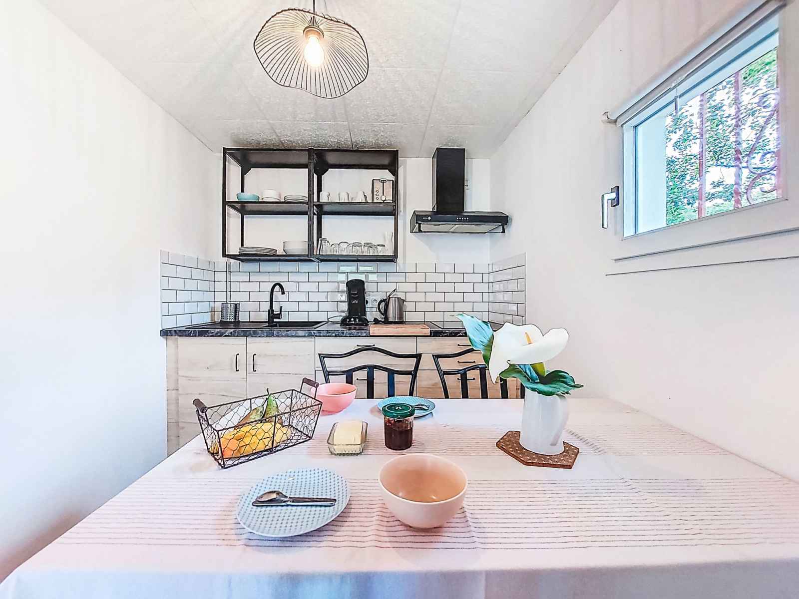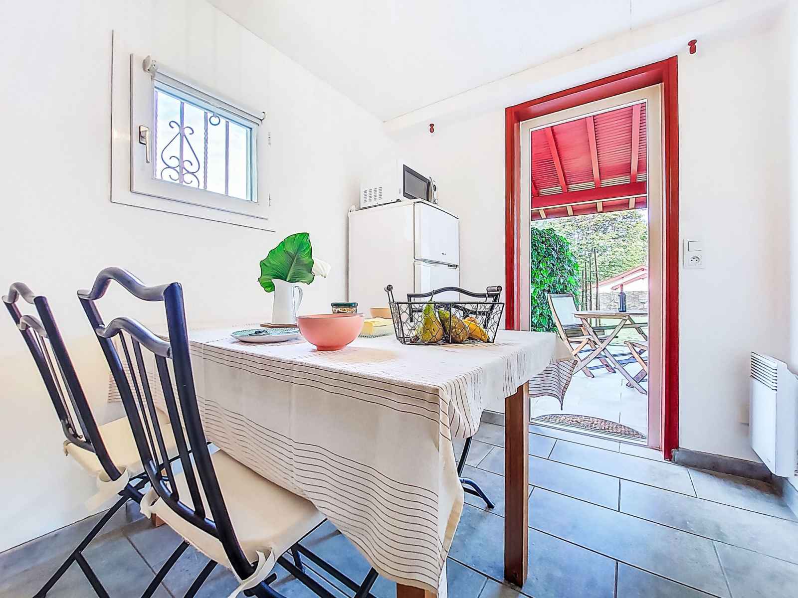 Maison studio 35 m2. aménagement agréable: séjour/chambre à coucher avec 1 lit (90 cm, longueur 190 cm), 1 grand-lit (140 cm, longueur 190 cm), tv (écran plat). sortie sur la terrasse. cuisine (2 plaques à induction, grille-pain, bouilloire électrique, micro-ondes, cafetière électrique, capsules pour machine à café (senseo) (non