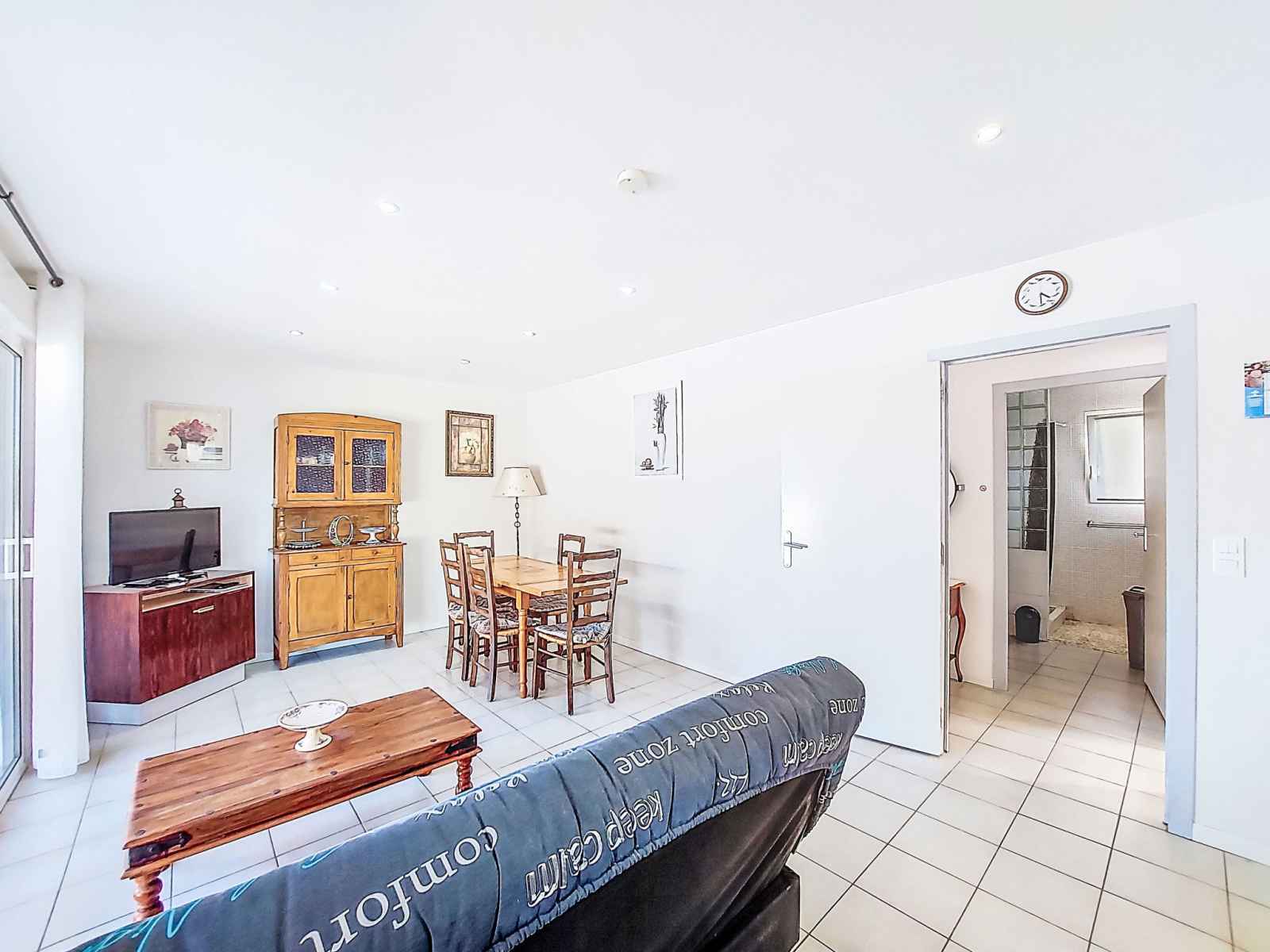 Maison 3 pièces 64 m2. aménagement confortable: séjour/salle à manger avec écran plat, radiateur électrique et air-conditionné. 1 chambre 10 m2 avec 1 grand-lit (140 cm, longueur 190 cm). 1 chambre 12 m2 avec 1 x 2 lits superposés (90 cm, longueur 190 cm), 1 grand-lit (140 cm, longueur 190 cm). cuisine (four, lave-vaisselle, 5 feux,