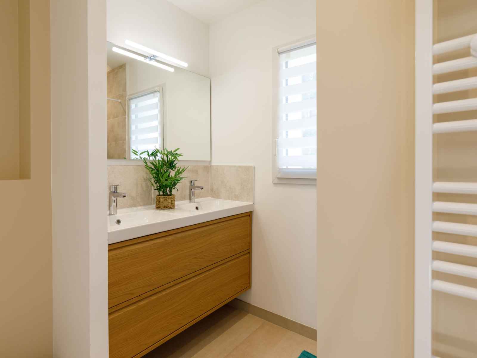 Belle maison individuelle moderne "ohana", de 2 étages, année de construction 2025. dans le quartier de les rochelets, situation tranquille, à 500 m de la mer, à 500 m de la plage, orientée sud-ouest. a usage privé: jardin 330 m2 (clôturé), place de parking (pour 2 voitures) sur le terrain. magasin d'alimentation 1.8 km, restaurant 160 m,