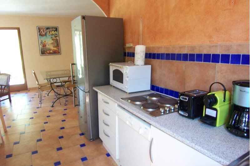 Cuisine : lave-vaisselle, lave-linge, plaque électrique, micro-ondes, combiné frigo-congélateur, grille-pain, cafetière, cafetière Nespresso...