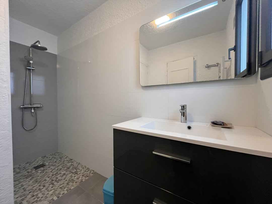 - Salle d'eau (Salle d'eau attenante chambre 1 : douche italienne, vasque, rangements.)