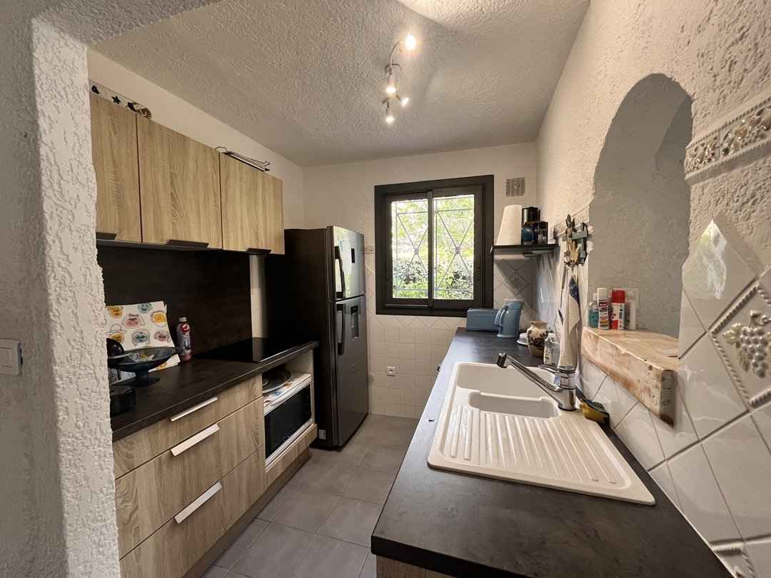 cuisine équipée : lave-vaisselle, lave-linge, combiné frigo-congélateur, bouilloire, micro-onde, cafetière..)