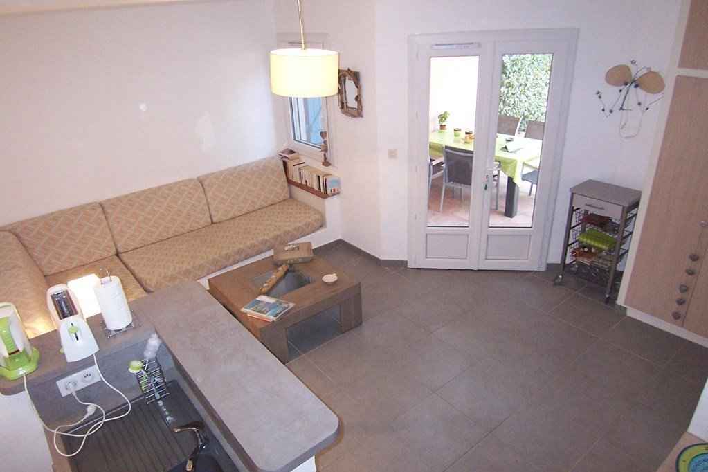 cette mini-villa coquette, joliment décorée et entièrement climatisée est située dans une résidence calme, à seulement 250m de la plage fin et des eaux turquoises de saint cyprien. le parc de la résidence est parfaitement entretenu, fleuri et arboré. c'est l'endroit idéal pour profiter de toutes les activités de saint cyprien et du