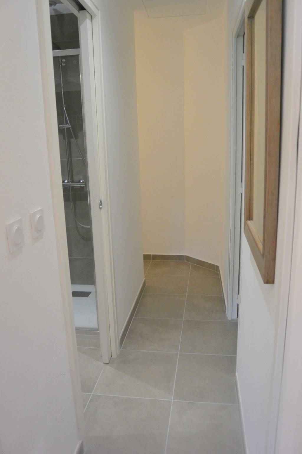 Salle d'eau : lavabo, douche, wc.