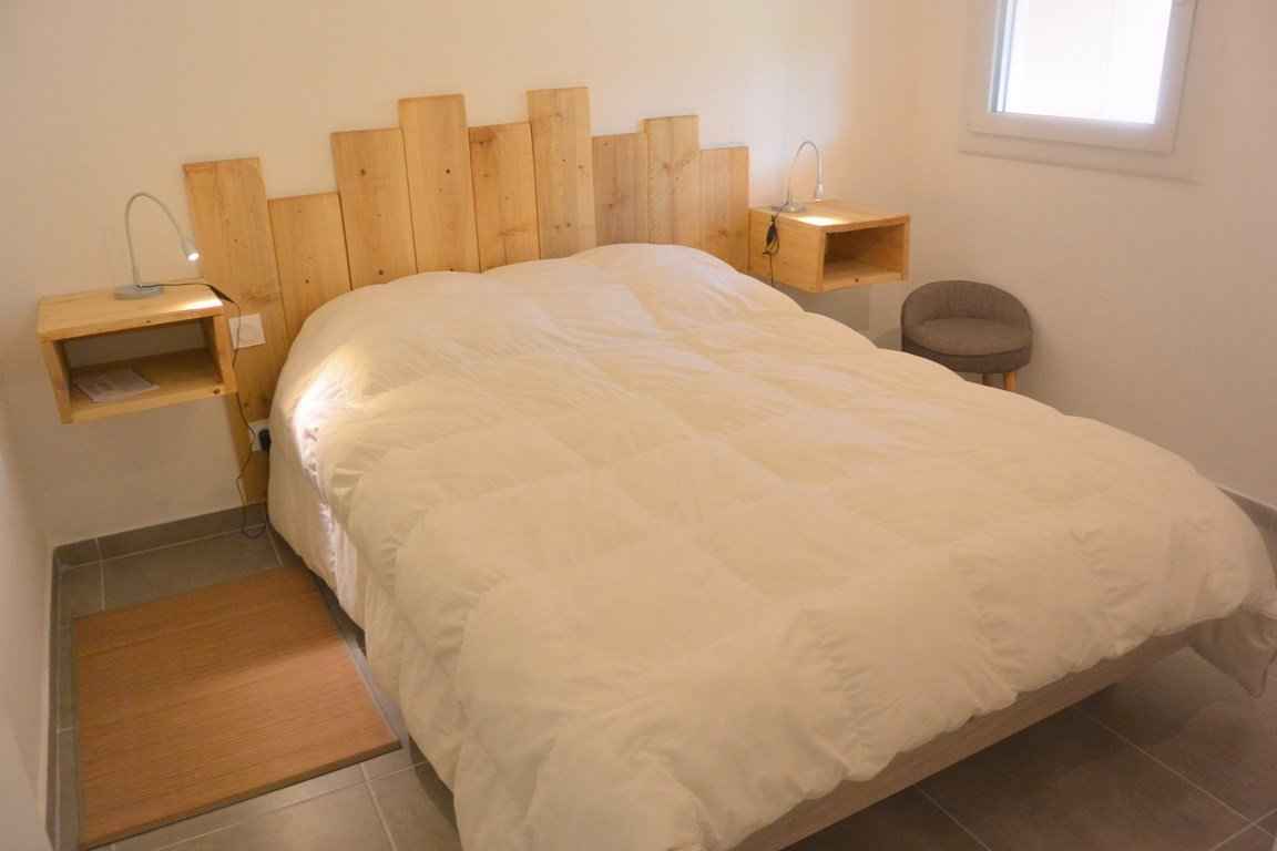 - Chambre 1 (Clim : 1 lit double en 140, rangements.)