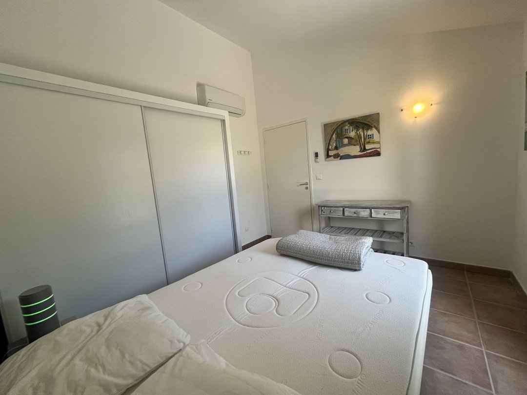 • Equipements : Proche commerce, Adapté aux familles, Lave vaisselle, Lave linge, Barbecue, Climatisation, Plage à pied , Piscine collective, Piscine dans résidence, Téléviseur