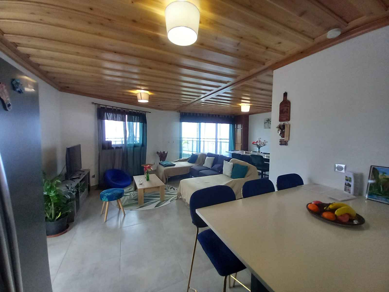 varangues et terrasses où vous pourrez profiter de vos repas ou pour vous détendre en admirant le coucher de soleil sur la mer. Aménagements : • Cuisine entièrement équipée : four, lave-linge, sèche-linge, cafetière, bouilloire, grille-pain et de nombreux autres équipements pour un confort maximal. • Cuisine extérieure • Double garage • Spa • Jardin arboré • Baby-foot, jeux pour enfants et adultes • Equipement pour bébé •Animaux acceptés. Depuis l’Aéroport de La Réunion Roland Garros 97438 Sainte-Marie, prendre la route N2 en direction de Saint-Denis. Rejoindre route N, continuer pendant environ 50 km jusqu’à sortie D12 Saint-Leu, La Chaloupe, Les colimaçons (rue Georges Pompidou). Tourner légèrement à gauche sur D13 (Rue du Commandant Cousteau) et continuer sur 550 mètres. Tourner à gauche sur Chemin Potier et continuer sur 600 mètres. Tourner à droite sur D3 (Rue Alexandre Bègue) et continuer sur 2,8 kilomètres. Impasse des Muguets, Saint-Christophe Ou l'Etang-les-Hauts 97416 Saint-Leu.