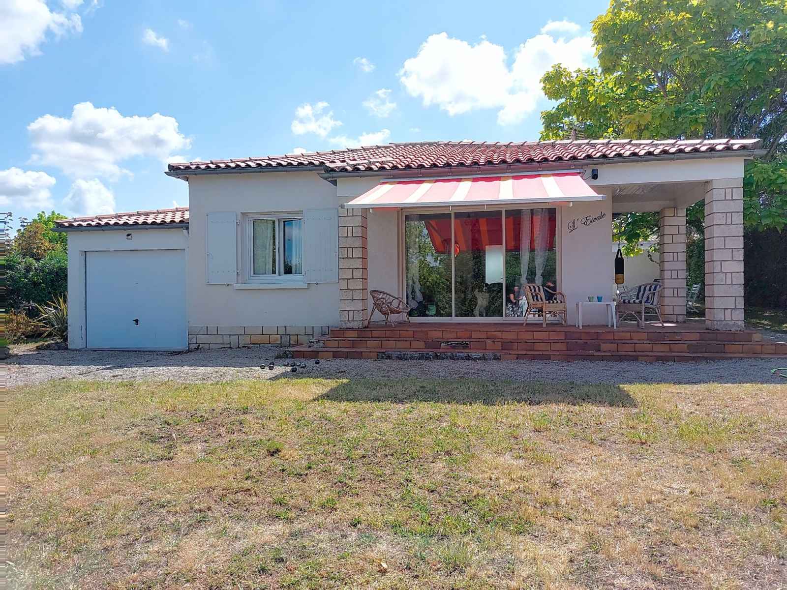 Maison individuelle "l'escale". en bordure de la localité, à 1.5 km du centre de saint palais sur mer, à 600 m de la mer, à 600 m de la plage. a usage privé: terrain 648 m2 (clôturé). infrastructures de la maison: air-conditionné, lave-linge. place de parking (pour 2 voitures) sur le terrain. supermarché 2.5 km, restaurant 1.5 km,