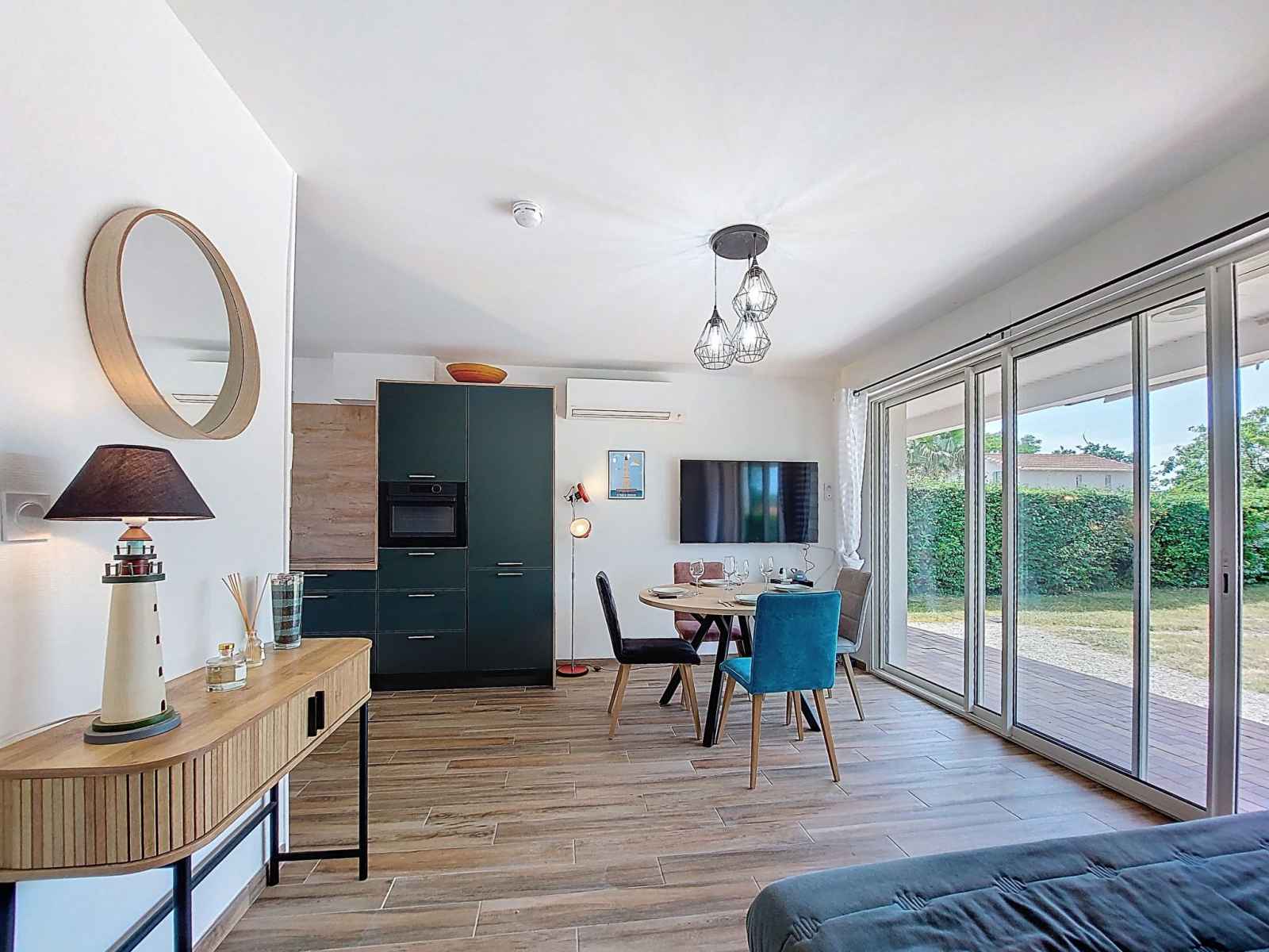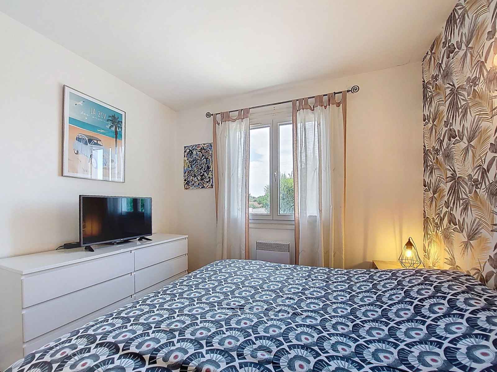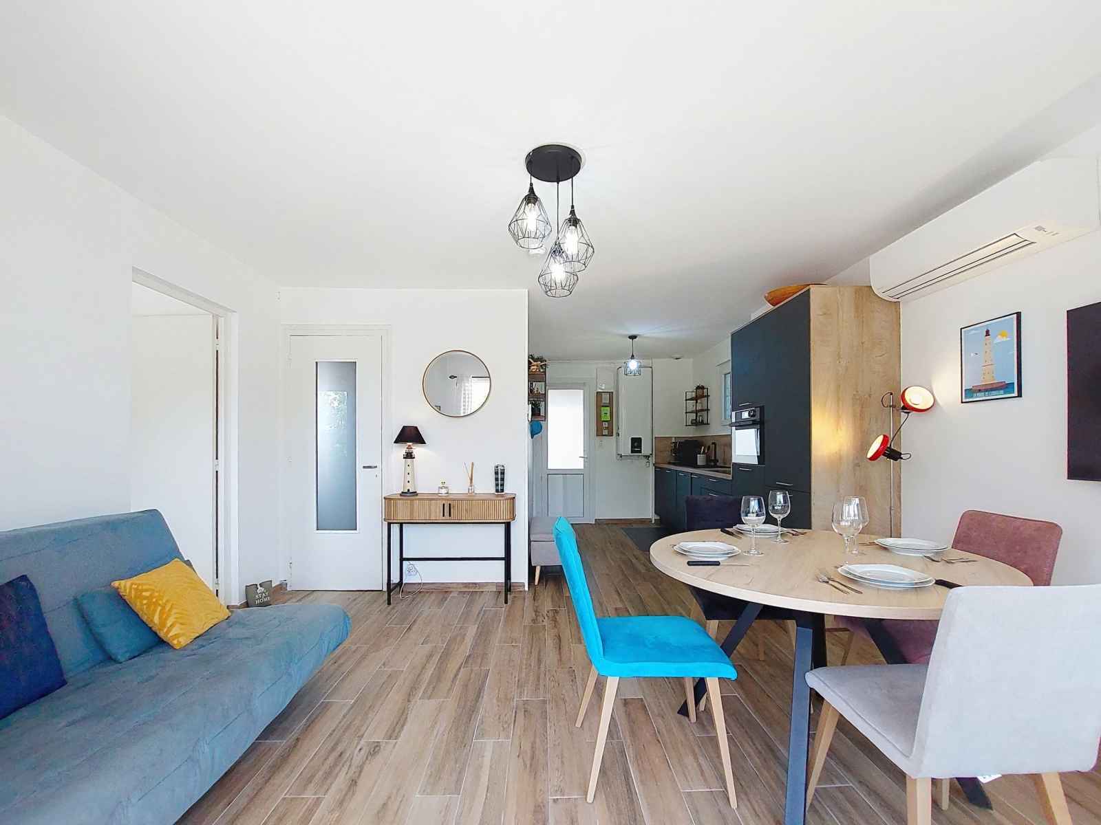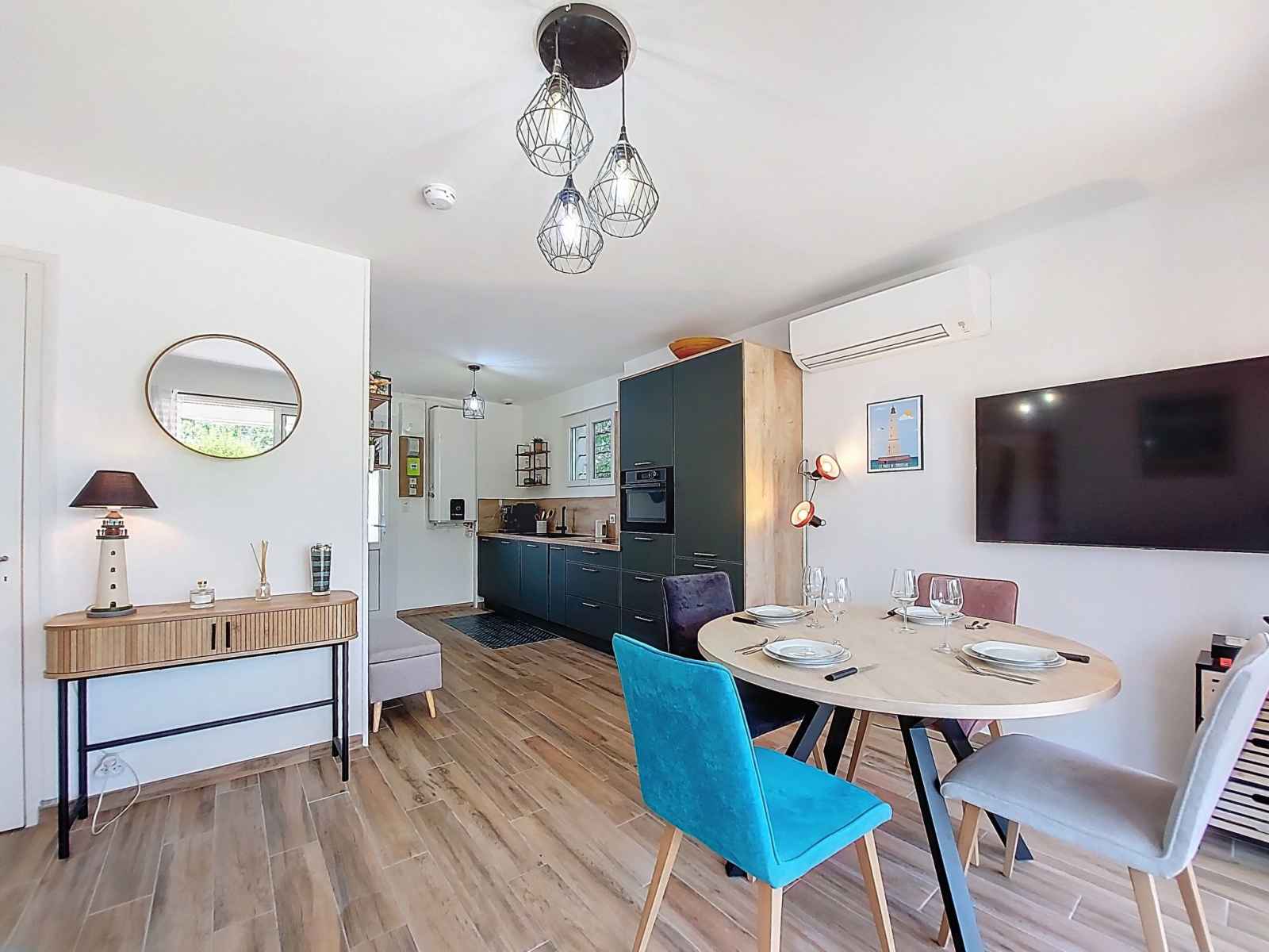 plaques à induction, grille-pain, bouilloire électrique, congélateur, cafetière électrique, combiné micro-ondes). Douche/WC. Air-conditionné. Terrasse 8 m2, jardin 650 m2. Meubles de terrasse. A disposition: lave-linge. Internet (Connexion WIFI, gratuit). Place de parking (2 Voitures). Veuillez noter: maison non-fumeur. Maximum 1 animal/ chien de petite taille autorisé. Détecteur de fumée. Annonce d'un particulier (art 155, IV du CGI).