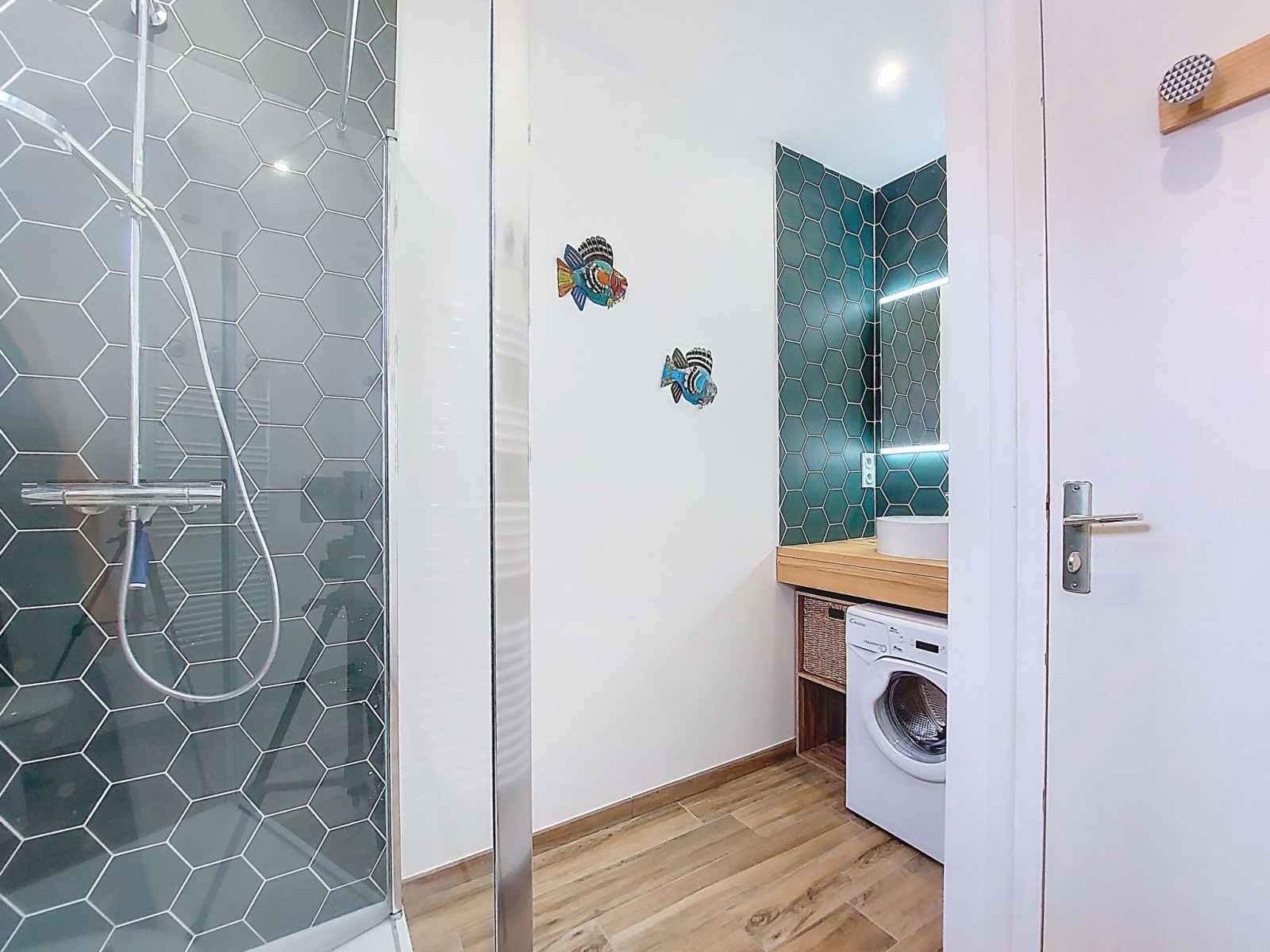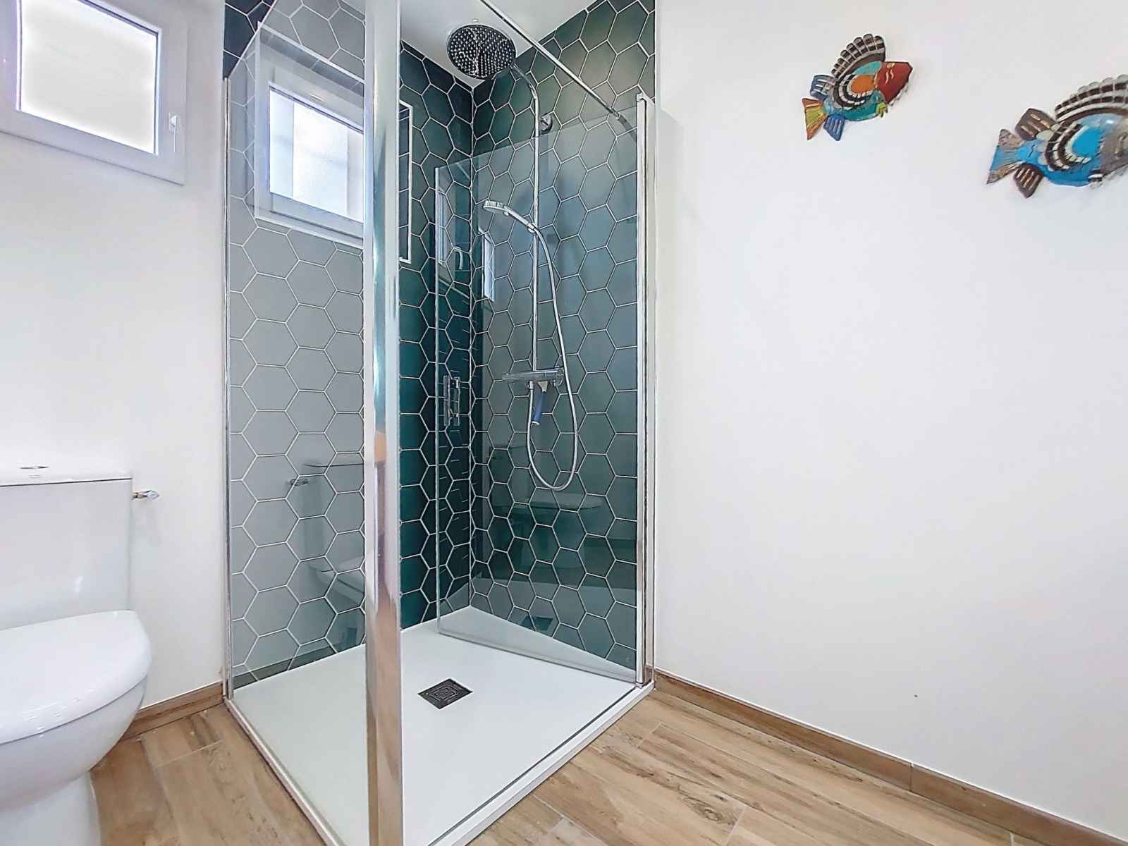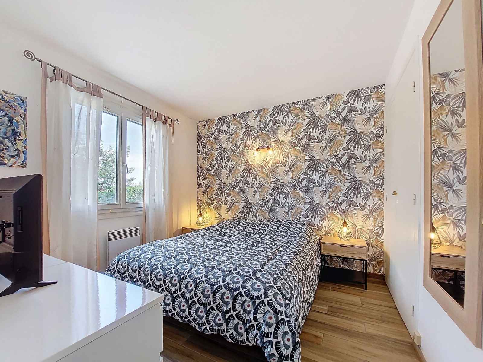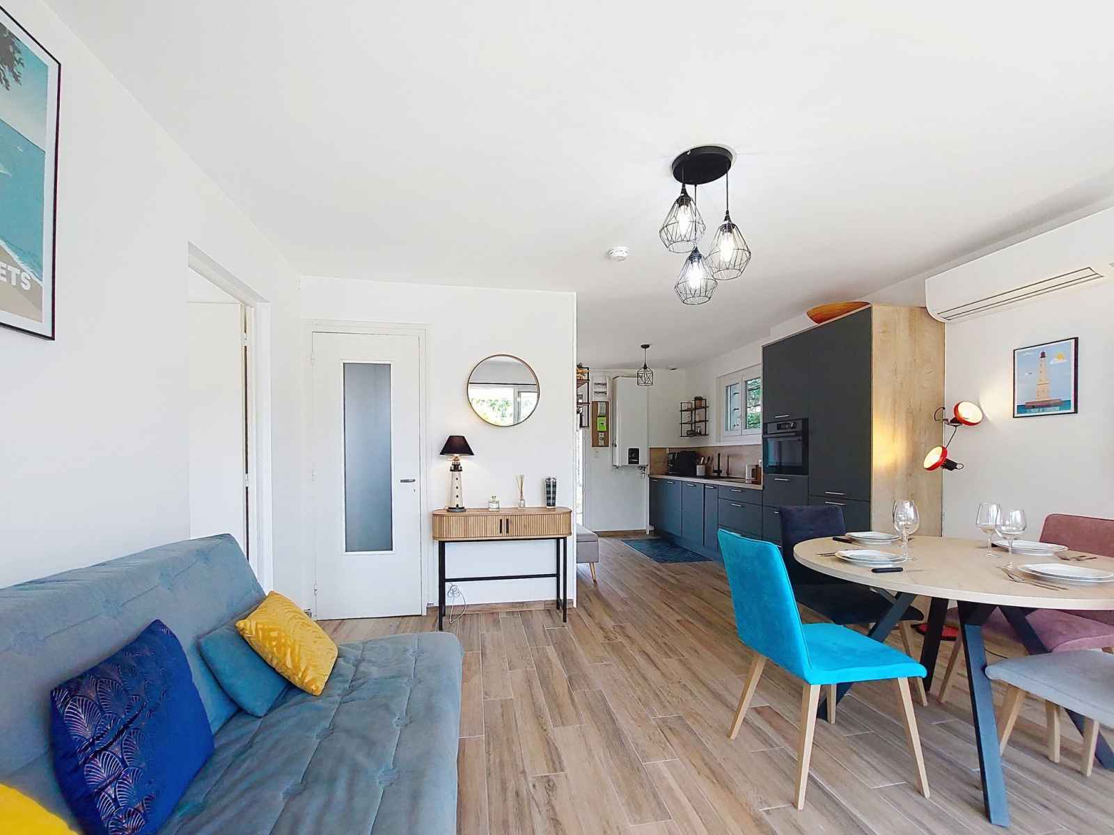 plaques à induction, grille-pain, bouilloire électrique, congélateur, cafetière électrique, combiné micro-ondes). Douche/WC. Air-conditionné. Terrasse 8 m2, jardin 650 m2. Meubles de terrasse. A disposition: lave-linge. Internet (Connexion WIFI, gratuit). Place de parking (2 Voitures). Veuillez noter: maison non-fumeur. Maximum 1 animal/ chien de petite taille autorisé. Détecteur de fumée. Annonce d'un particulier (art 155, IV du CGI).