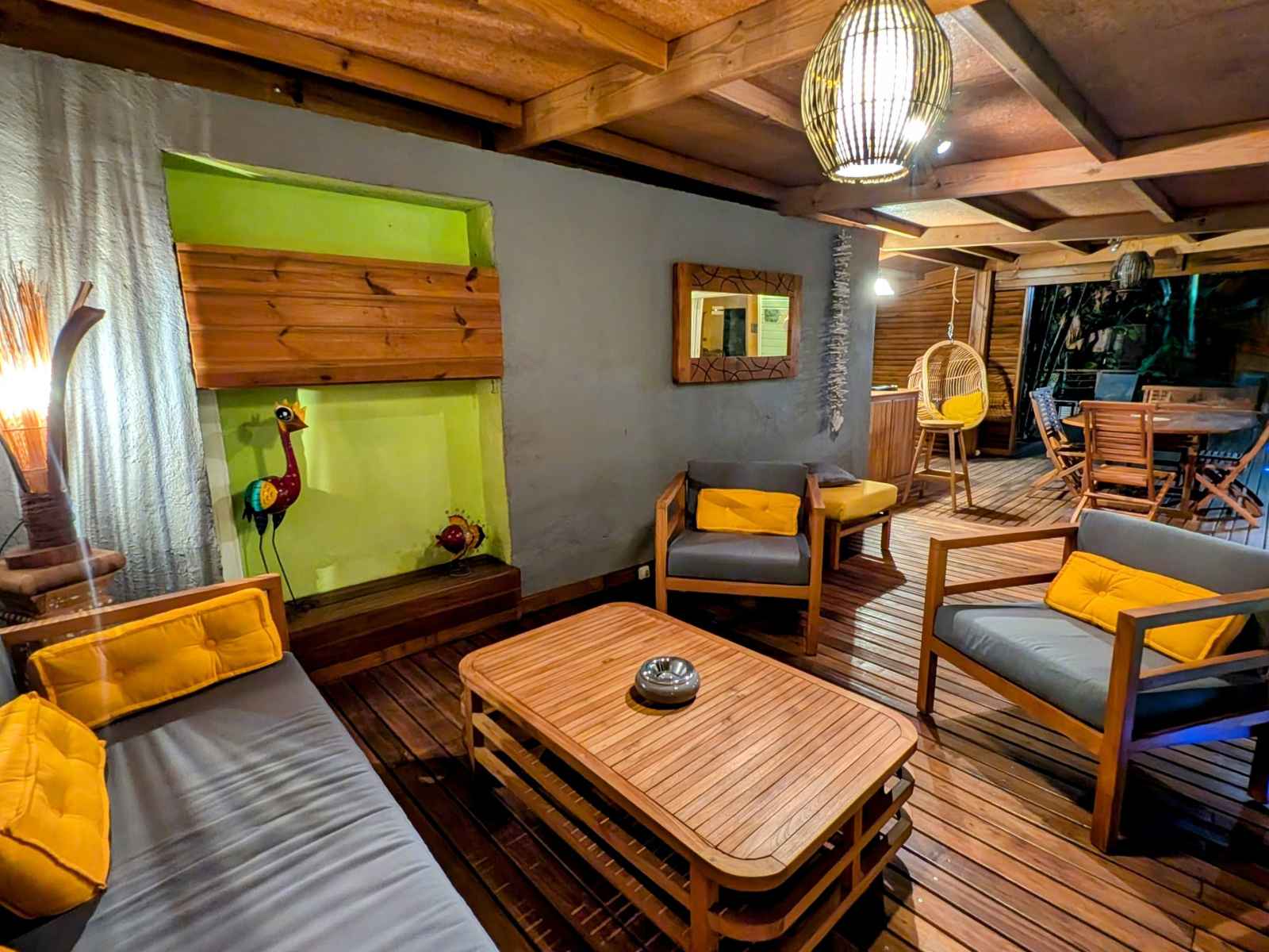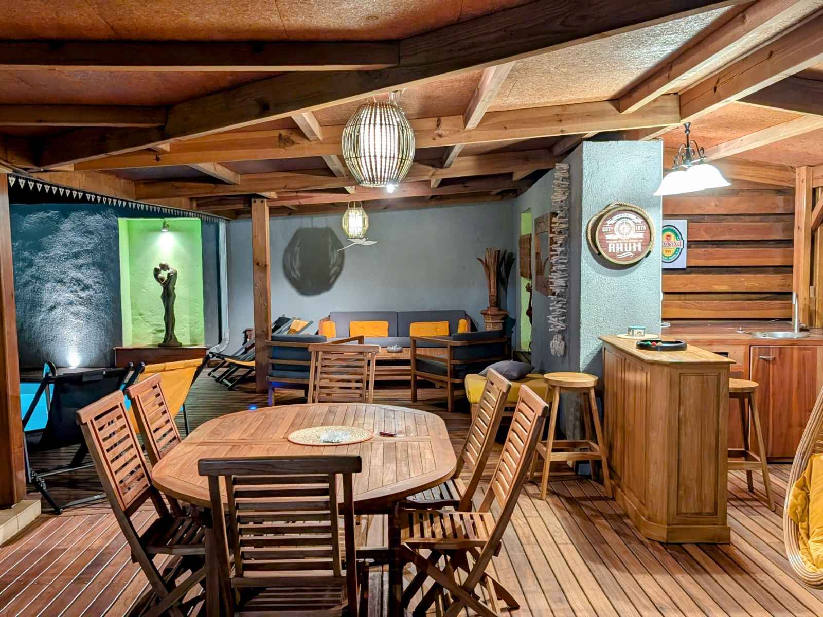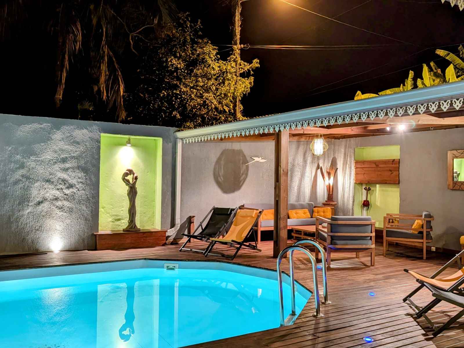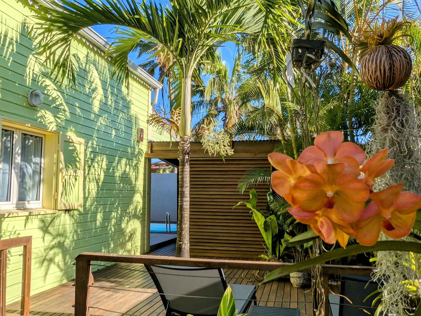 Grande villa tout confort située à saint gilles les hauts, à proximité du musée de villèle et du golf du bassin bleu. de style créole avec décoration locale elle est composée de trois chambres, deux salles de bain, d'une piscine chauffée (solaire), d'une douche extérieure, d'un jardin clos et d'une cuisine extérieure.