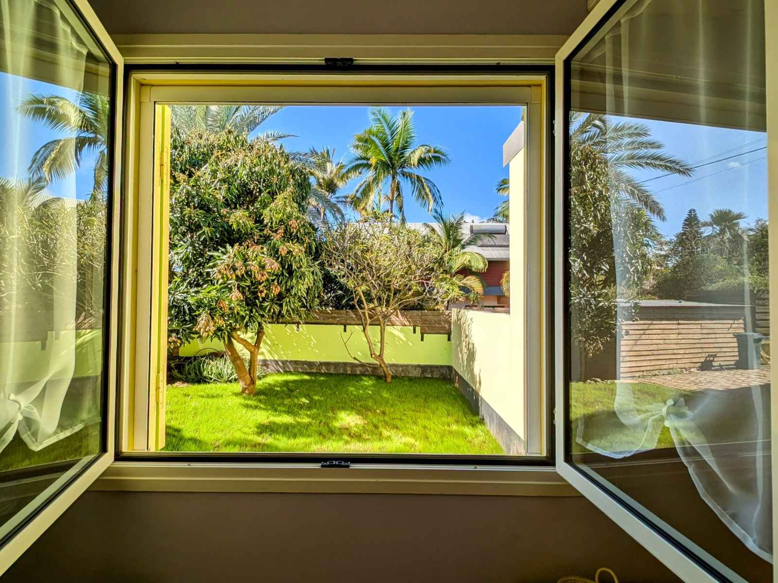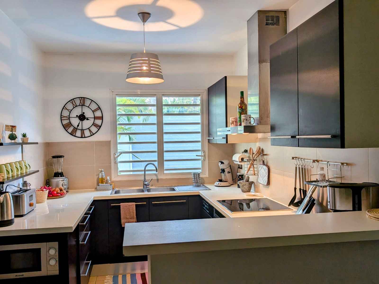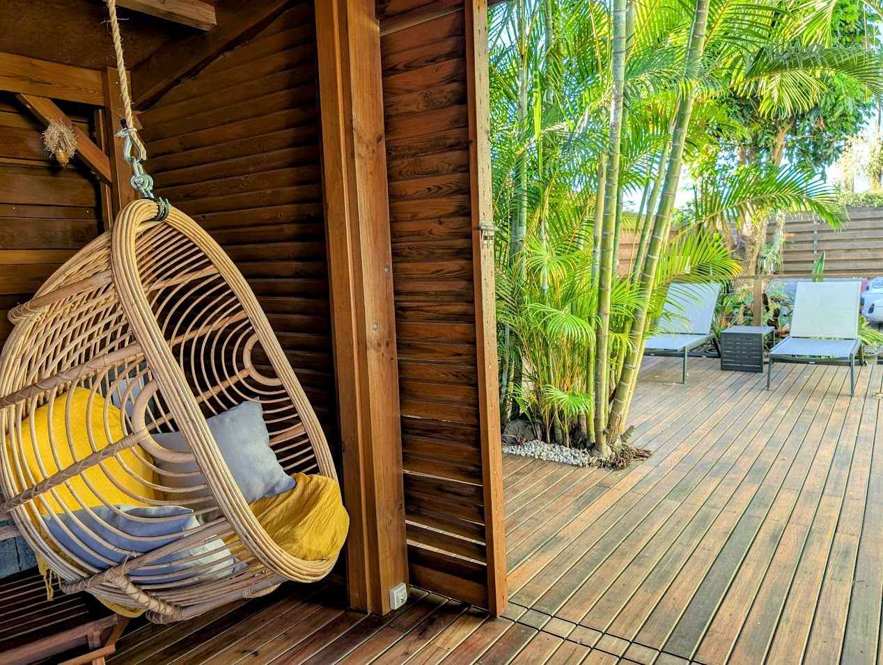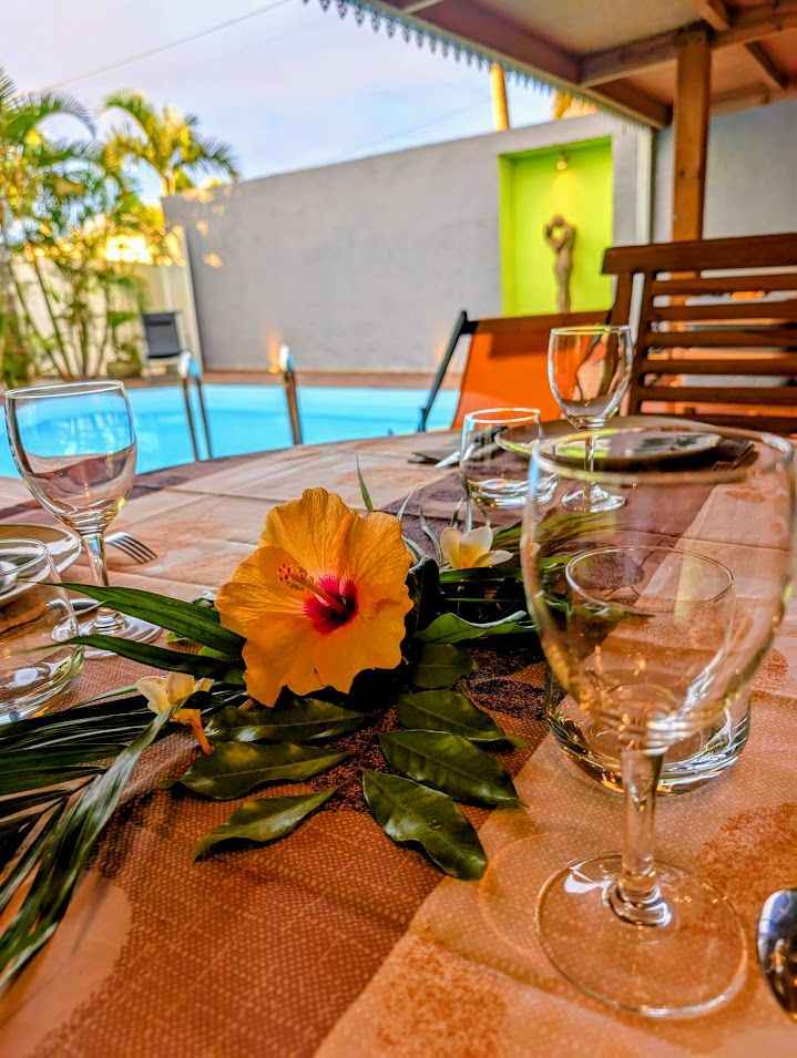 prendre vos repas autour de la piscine sous la varangue équipée d’un salon de jardin, d’une table à manger et d'une plancha. La villa comprend une chambre et une salle de bain au rez-de-chaussée, ainsi que deux chambres et une salle de bain à l’étage. À votre disposition dans la villa : Un salon équipé d’une TV avec bouquet TV, WIFI, jeux vidéo, bibliothèque et équipements de remise en forme. Linge de lit, linge de toilette et linge de maison. Une cuisine équipée avec machine à laver, lave-vaisselle, four, four micro-ondes, machine à expresso, bouilloire, grille-pain, réfrigérateur/congélateur, plaques à induction, hotte, cuiseur à riz, friteuse sans huile, robot multifonction.... Aéroport de La Réunion Roland Garros 97438 Sainte-Marie Prendre Rue Georges Guynemer et continuer sur 500 m Continuer sur Allée Icare sur 120 m Au rond-point : 3. Prendre la 1ère sortie sur Avenue Roland Garros, continuer sur 170 m Au rond-point suivant, prendre la 1ère sortie et continuer sur 45 m Prendre à droite pour rejoindre la N2. Continuer sur 7 km (Route du Littoral, Boulevard Lancastel) Tourner légèrement à droite sur Boulevard Joffre (N2), continuer sur 1,4 km Prendre à droite pour rejoindre la N1 (Nouvelle Route du Littoral), continuer sur 1,6 km Continuer sur la N1 pendant 5,4 km, puis encore 1,4 km Tourner légèrement à gauche pour rester sur la N1 (Route du Littoral), continuer sur 24 km (Route des Tamarins) Prendre la sortie vers D100 (Voie Cannière), continuer sur 650 m (La Saline-les-Bains, L’Ermitage-les-Bains, Villèle) Au rond-point : 11. Faire demi-tour et continuer sur la D100 pendant 500 m Au rond-point suivant, prendre la 2ème sortie sur D100, continuer sur 450 m Tourner légèrement à droite pour rester sur la D100, continuer sur 1,1 km Tourner légèrement à gauche sur D100 (Chemin des Roses), continuer sur 270 m Tourner à gauche sur Chemin des Roses, continuer sur 850 m Chemin des Roses 97435 Saint-Paul Ouvert toute l'année