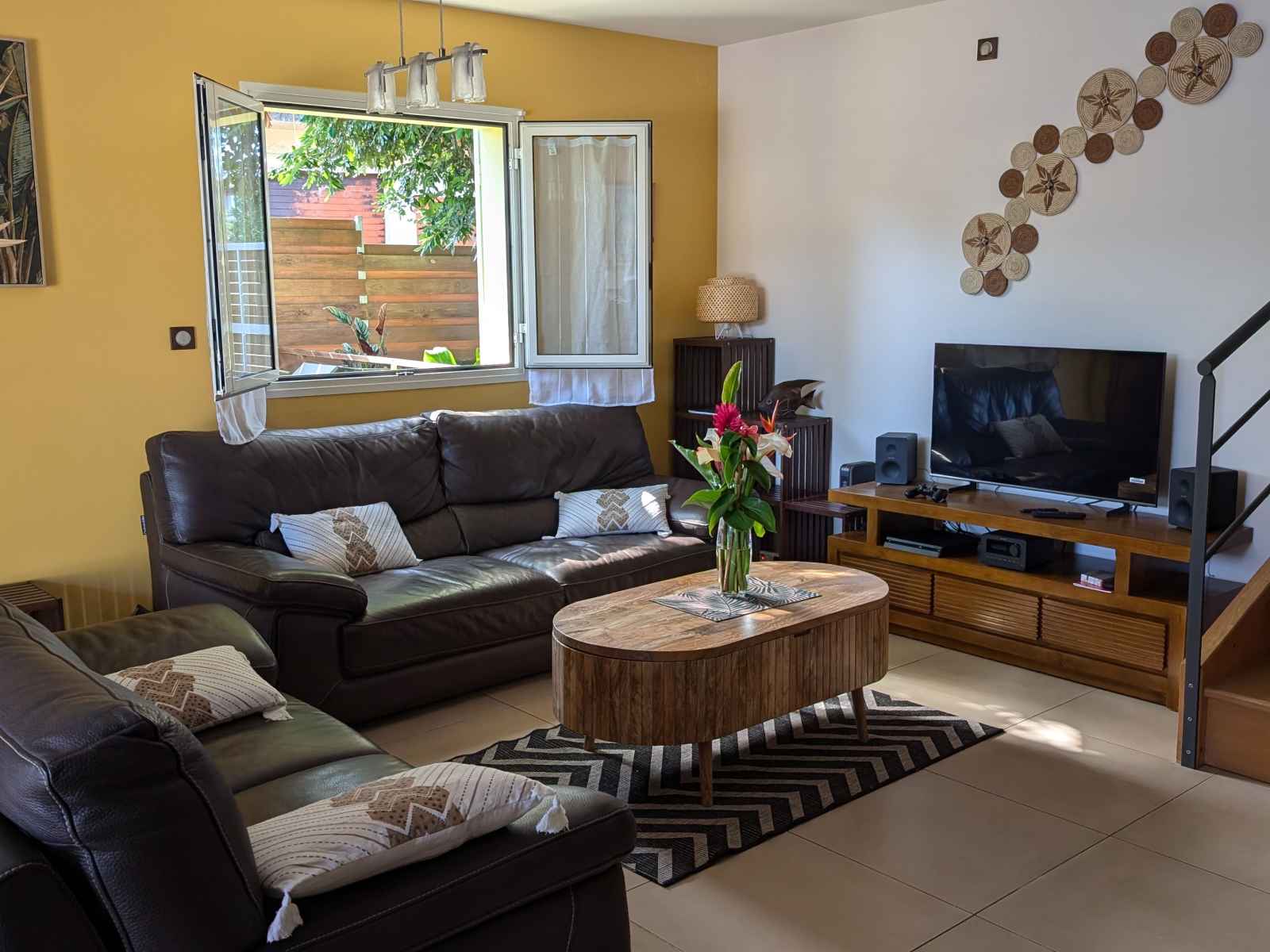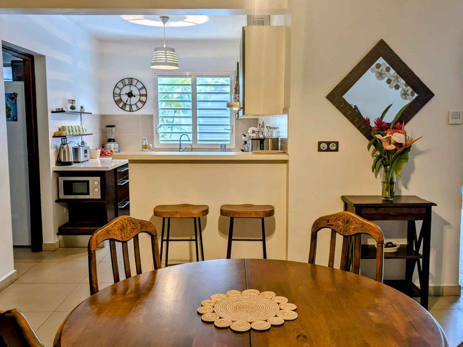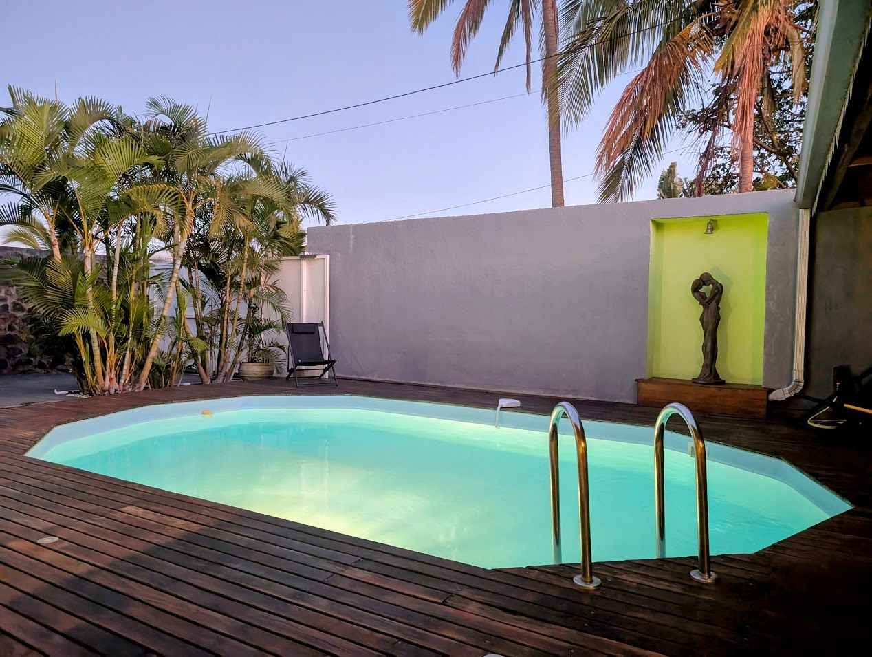 prendre vos repas autour de la piscine sous la varangue équipée d’un salon de jardin, d’une table à manger et d'une plancha. La villa comprend une chambre et une salle de bain au rez-de-chaussée, ainsi que deux chambres et une salle de bain à l’étage. À votre disposition dans la villa : Un salon équipé d’une TV avec bouquet TV, WIFI, jeux vidéo, bibliothèque et équipements de remise en forme. Linge de lit, linge de toilette et linge de maison. Une cuisine équipée avec machine à laver, lave-vaisselle, four, four micro-ondes, machine à expresso, bouilloire, grille-pain, réfrigérateur/congélateur, plaques à induction, hotte, cuiseur à riz, friteuse sans huile, robot multifonction.... Aéroport de La Réunion Roland Garros 97438 Sainte-Marie Prendre Rue Georges Guynemer et continuer sur 500 m Continuer sur Allée Icare sur 120 m Au rond-point : 3. Prendre la 1ère sortie sur Avenue Roland Garros, continuer sur 170 m Au rond-point suivant, prendre la 1ère sortie et continuer sur 45 m Prendre à droite pour rejoindre la N2. Continuer sur 7 km (Route du Littoral, Boulevard Lancastel) Tourner légèrement à droite sur Boulevard Joffre (N2), continuer sur 1,4 km Prendre à droite pour rejoindre la N1 (Nouvelle Route du Littoral), continuer sur 1,6 km Continuer sur la N1 pendant 5,4 km, puis encore 1,4 km Tourner légèrement à gauche pour rester sur la N1 (Route du Littoral), continuer sur 24 km (Route des Tamarins) Prendre la sortie vers D100 (Voie Cannière), continuer sur 650 m (La Saline-les-Bains, L’Ermitage-les-Bains, Villèle) Au rond-point : 11. Faire demi-tour et continuer sur la D100 pendant 500 m Au rond-point suivant, prendre la 2ème sortie sur D100, continuer sur 450 m Tourner légèrement à droite pour rester sur la D100, continuer sur 1,1 km Tourner légèrement à gauche sur D100 (Chemin des Roses), continuer sur 270 m Tourner à gauche sur Chemin des Roses, continuer sur 850 m Chemin des Roses 97435 Saint-Paul Ouvert toute l'année