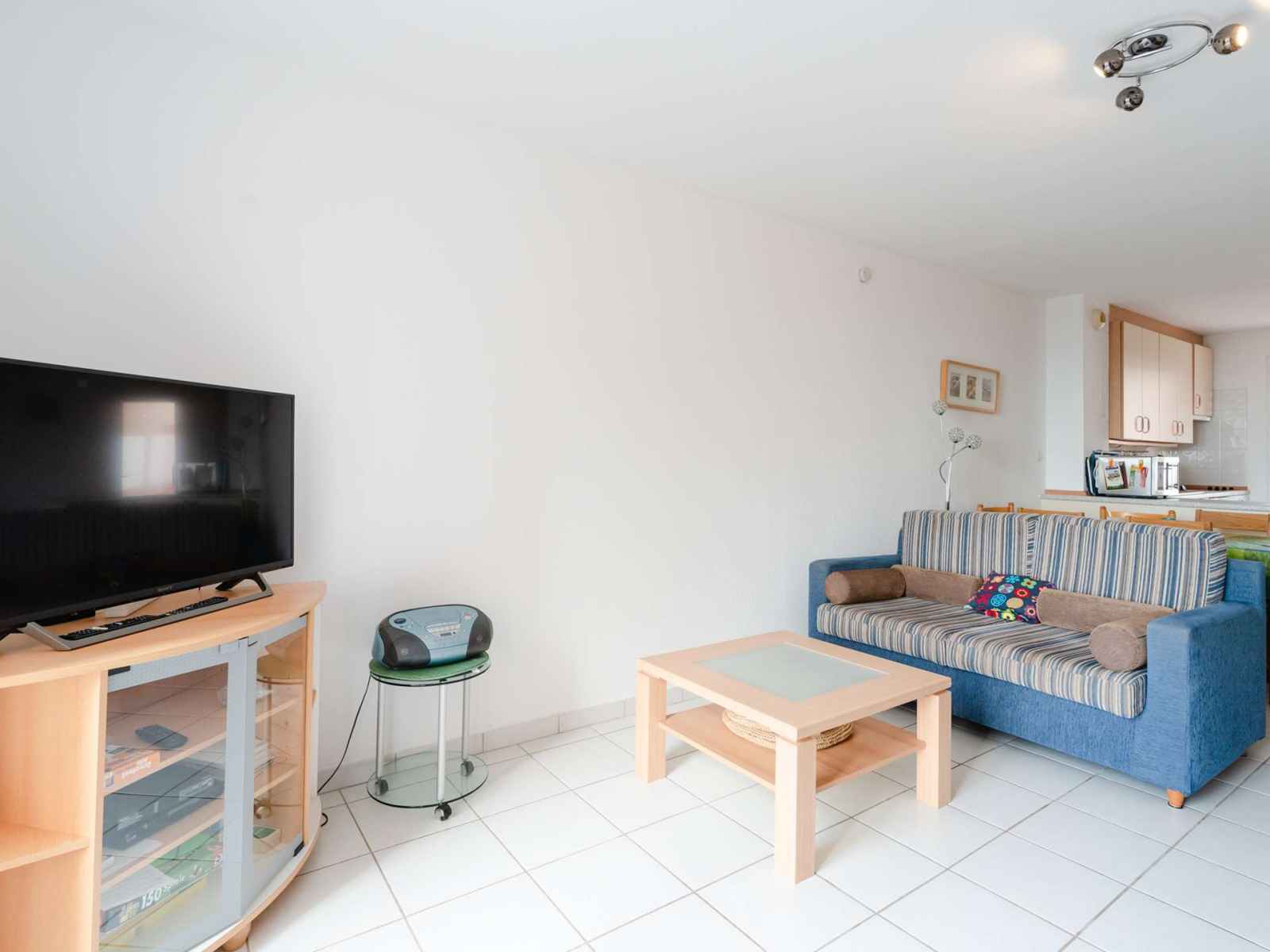 équipée d'une table pour 4 personnes et parasol. La pièce de vie est constituée d'un espace salon avec canapés, TV (chaines françaises et allemandes),accès WIFI, table, et d'un espace cuisine entièrement équipé (cafetière classique, 4 plaques de cuisson vitro-céramiques, grille-pain, bouilloire, réfrigérateur avec congélateur, lave-vaisselle, lave-linge avec fonction sèche-linge). Depuis la cuisine une seconde terrasse est accessible, avec étendoir pour le linge.