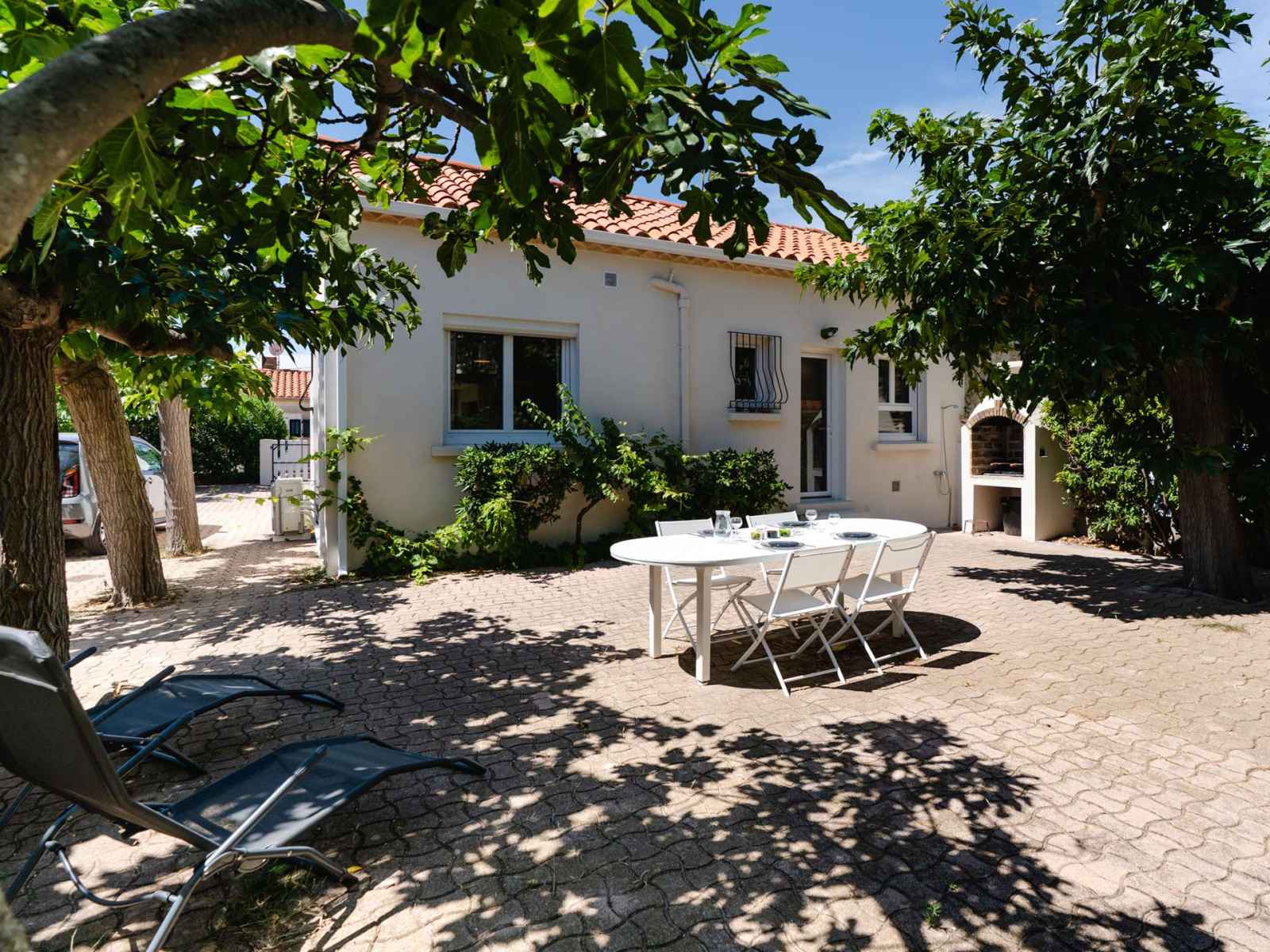 • Equipements : 3 chaises longues, Aspirateur, Barbecue charbon, Bouilloire, Cafetière à dosettes NESPRESSO, Cafetière électrique, Climatisation, Congélateur, Détecteur de fumée, Douche extérieure, Etendoir, Four, Hotte aspirante, Lave linge, Lave Vaisselle, Micro-ondes, Parasol, Plaque induction (3 feux), Réfrigérateur, Salon de jardin (6 personnes), Télévision