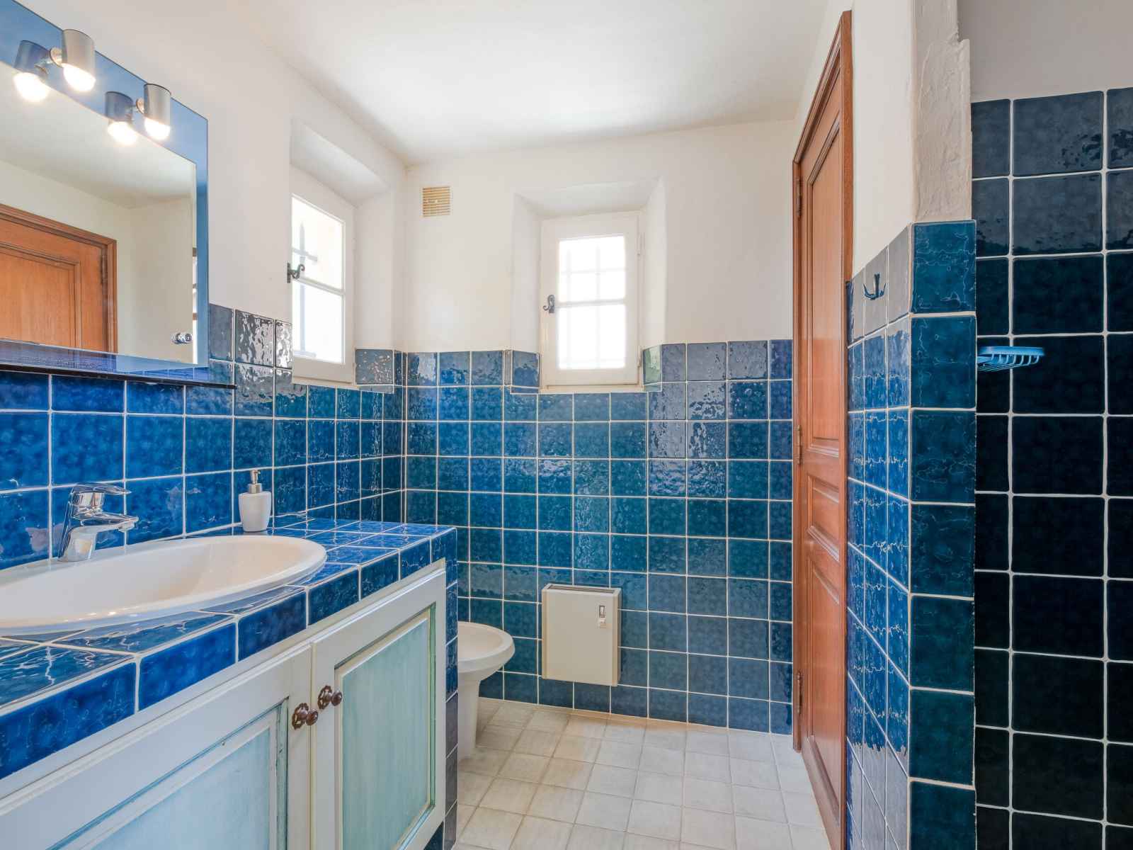 électrique, micro-ondes, cafetière électrique). Sortie sur la terrasse. Salle de bains, WC séparé. Chauffage électrique. À l'étage supérieur: 1 chambre avec 1 grand-lit (1 x 140 cm, longueur 200 cm), bidet et douche. Sortie sur la terrasse. 1 chambre avec 1 grand-lit (160 cm, longueur 200 cm), bidet, WC séparés et douche. Sortie sur la terrasse. 1 chambre avec 2 lits (80 cm, longueur 190 cm), douche/WC et ventilateur. Grande terrasse, situation sud-est. Meubles de terrasse, chaises longues. Très belle vue panoramique sur la mer. A disposition: lave-linge. Internet (Connexion WIFI, gratuit). Veuillez noter: logement non-fumeur. Détecteur de fumée. 83115002983DZ