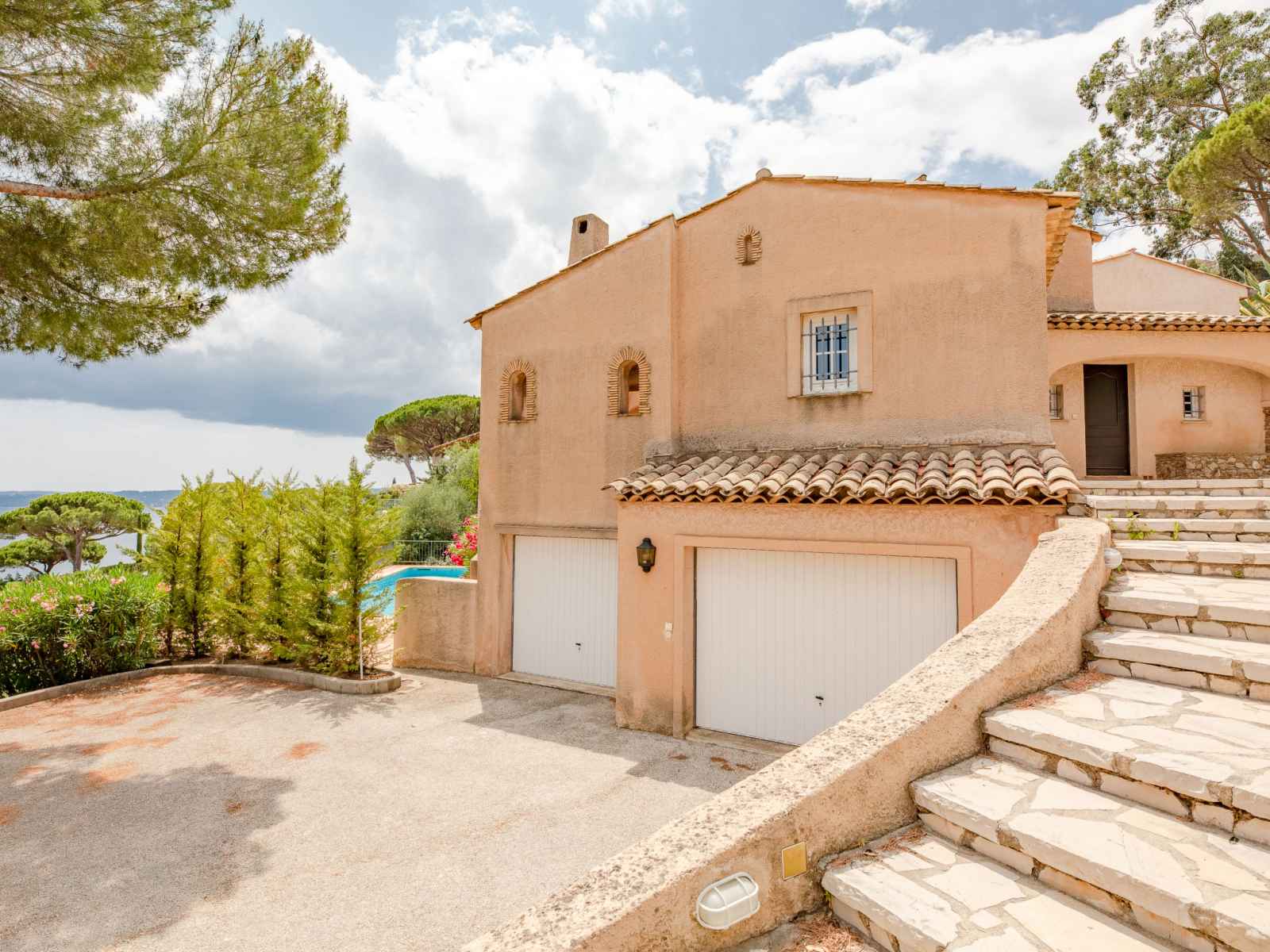 Belle villa "villa la sianne". en bordure de la localité, à 1.5 km du centre de ste maxime, situation tranquille, ensoleillée sur une colline, dans un quartier résidentiel, à 1 km de la mer, à 1 km de la plage. a usage privé: terrain à l'état naturel 1'935 m2, jardin sur plusieurs niveaux (pas clôturé), piscine (10 x 5 m, disponibilité