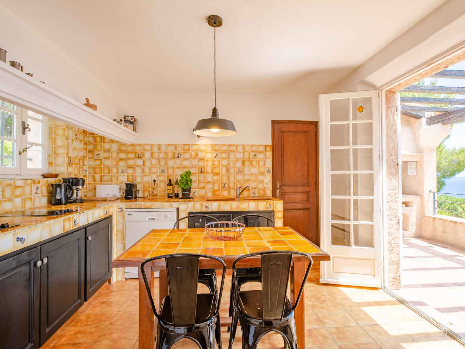 Villa 5 pièces 210 m2 sur 2 niveaux, situation sud. aménagement confortable: séjour/salle à manger avec cheminée (uniquement à titre de décoration), tv. sortie sur la terrasse. 1 chambre avec 1 grand-lit (160 cm, longueur 200 cm). sortie sur la terrasse. cuisine (four, lave-vaisselle, 4 plaques vitrocéramiques, grille-pain, bouilloire